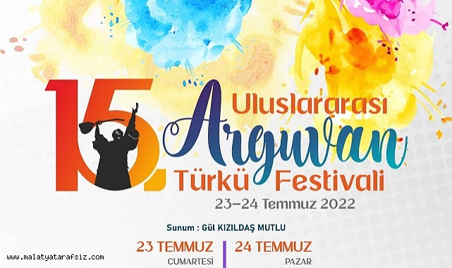 Arguvan Belediyesi, Arguvan ve Köyleri Eğitim Kültür Vakfı ile Arguvan Dernekleri tarafından ortaklaşa düzenlenecek olan 15. Uluslararası Arguvan Türkü Festivali 23-24 Temmuz tarihlerinde Nazım Hikmet Meydanında yapılacak.
