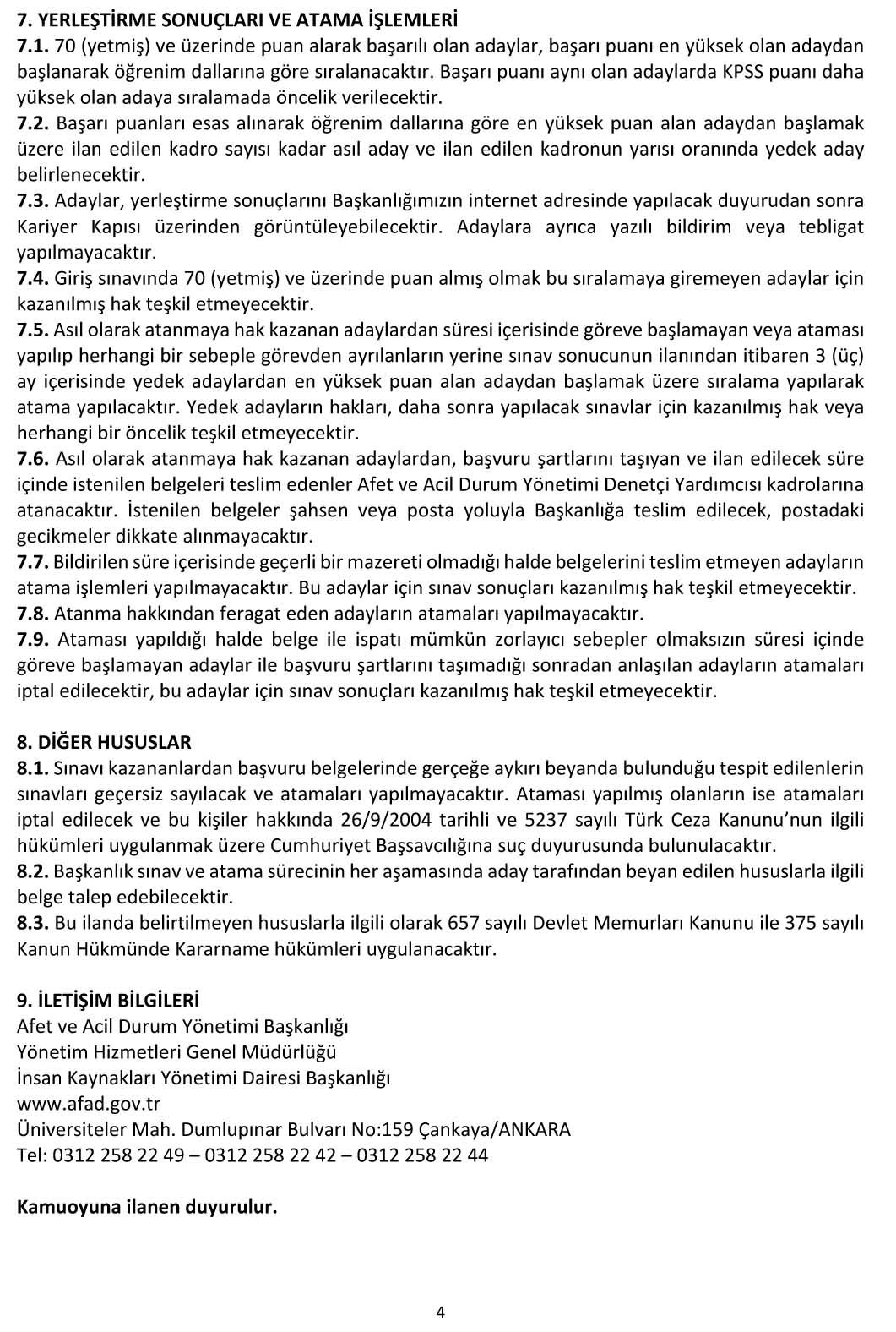 Resmi ilan metni için tıklayınız