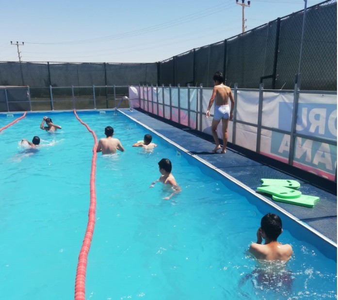 Akçadağ İlçesi Portatif Yüzme Havuzunda Gençlik ve Spor Müdürlüğü Yaz Spor Okulları Yüzme Kurslarına 50 civarında kursiyer katılıyor.