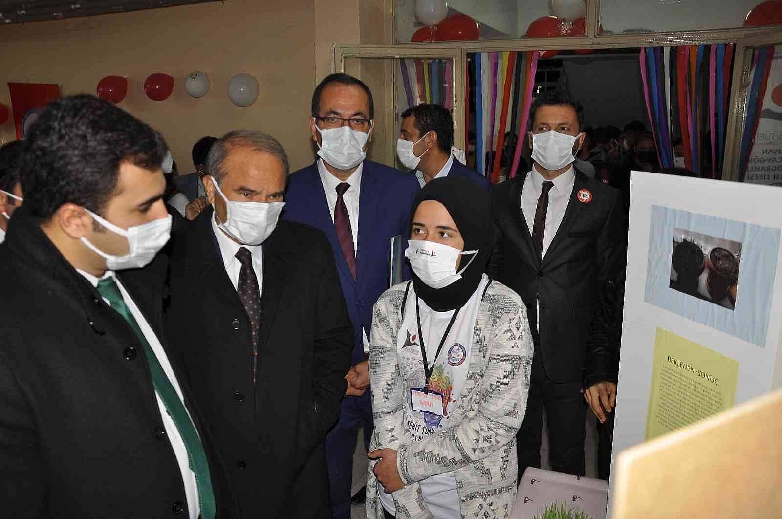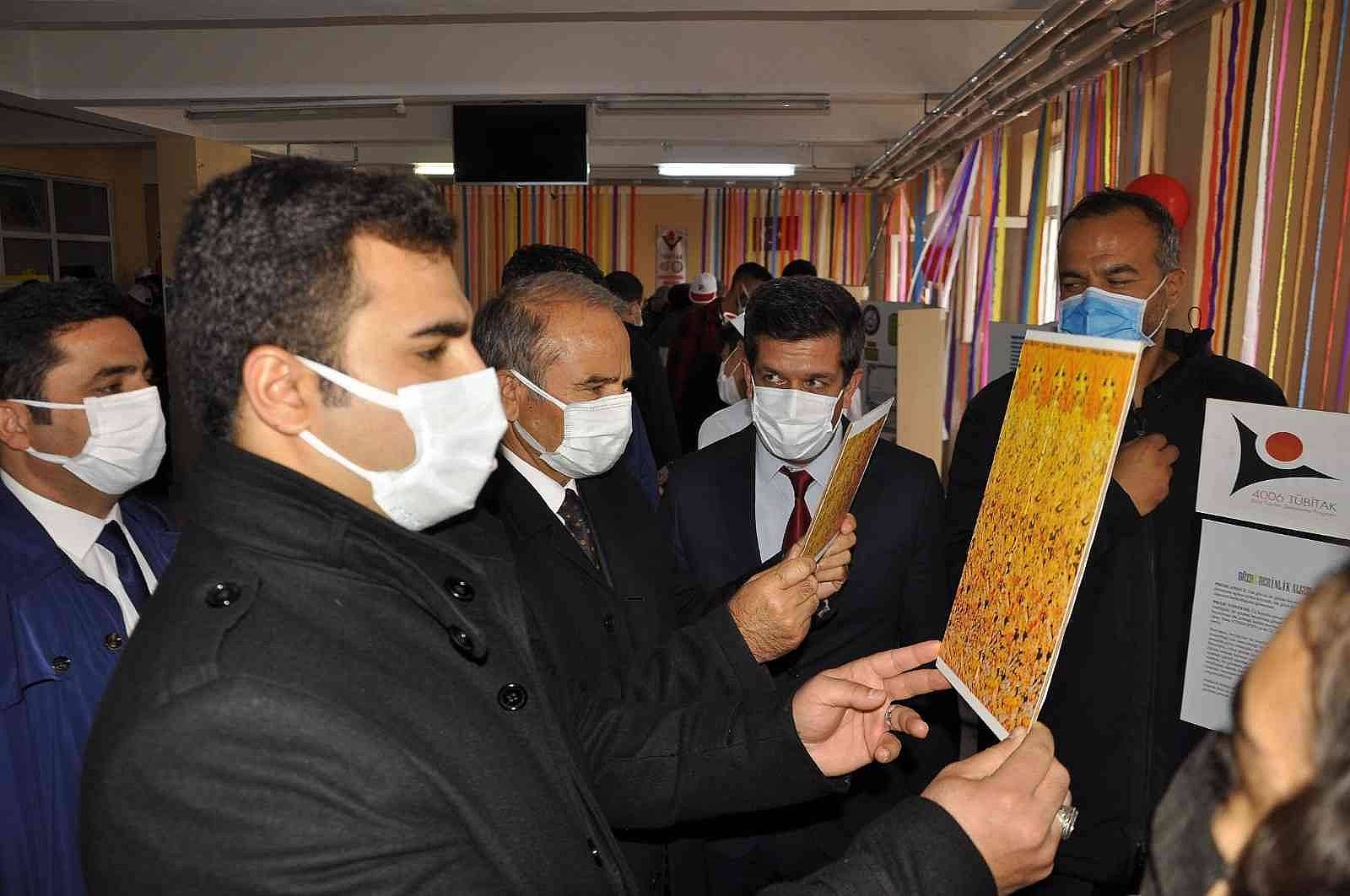 Fuarda projeleri tek tek inceleyen Kaymakam Kemal Ülkü ve protokol üyeleri, başarılı çalışmalarından dolayı öğrencileri ve öğretmenleri tebrik ettiler.