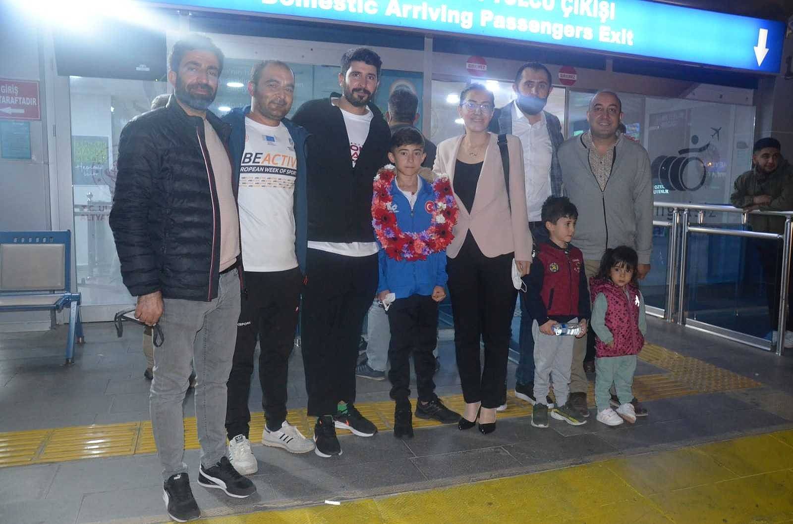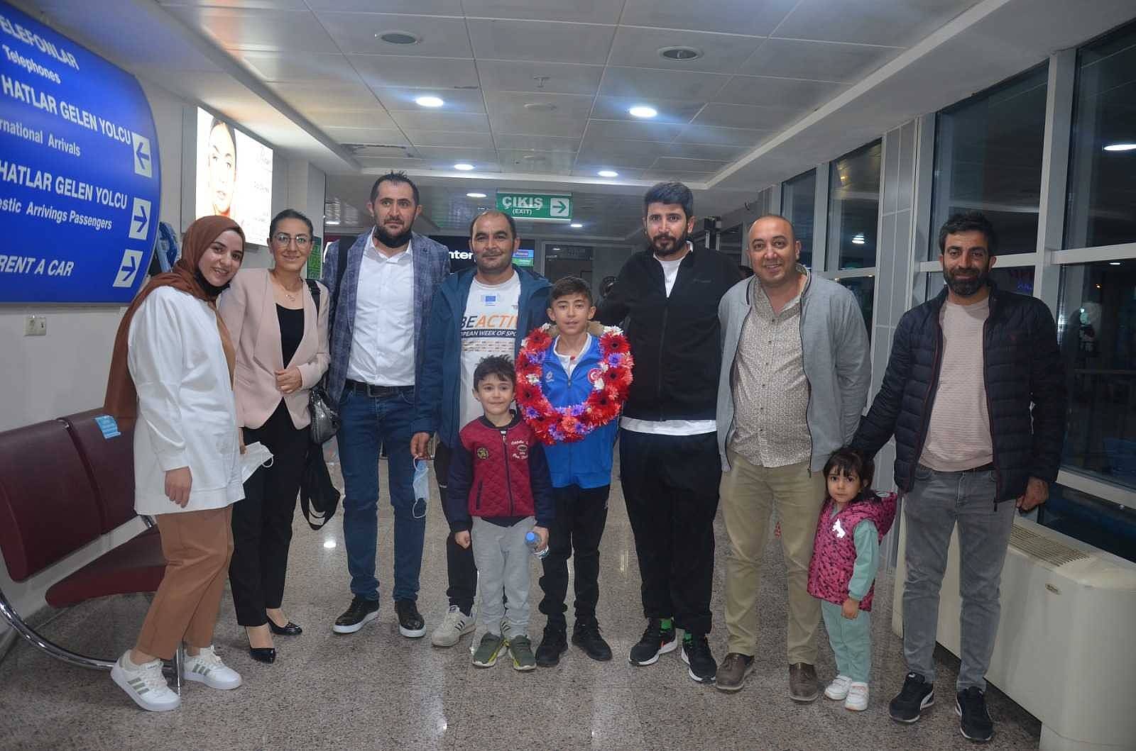 İspanya'nın Casdelldefas kentinde yapılan Biathle-Triathle Avrupa Şampiyonasında, U 11 Erkekler' de Avrupa ikinci olan Egemen Özden, memleketinde çiçeklerle karşılandı.