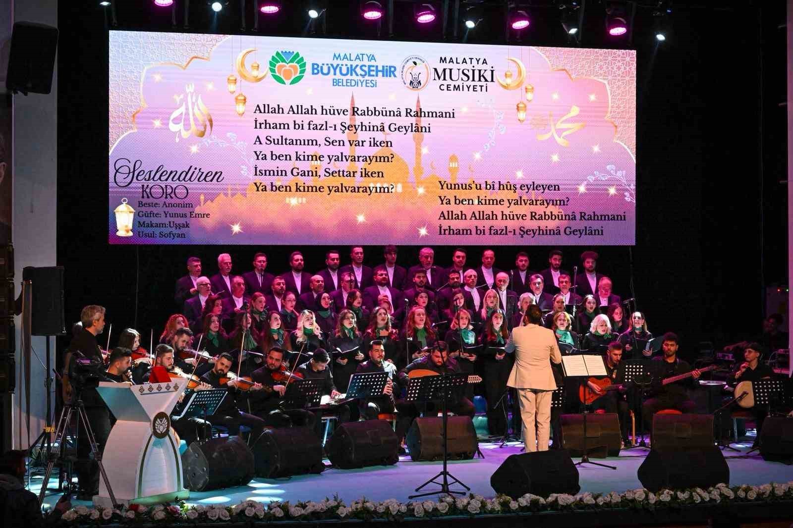 Büyükşehir Belediyesi Kültür ve Sosyal İşler Daire Başkanlığı tarafından 2026 Ramazan etkinlikleri kapsamında Kongre ve Kültür Merkezinde Malatya Musiki Cemiyeti Tasavvuf Müziği Korosu tarafından ilahi konseri verildi.