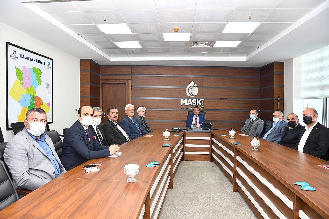 Malatya Büyükşehir Belediye Başkanı Selahattin Gürkan, Ziraat Odaları İl Koordinasyon Başkanı Yunus Kılıç ve ilçelerdeki ziraat odalarının başkanları ile ile MASKİ Genel Müdürlüğünde bir araya gelerek yapılan çalışmalarla alakalı bilgi alışverişinde bulundu.