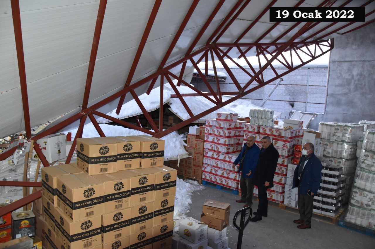Oda Başkanı Sadıkoğlu, yoğun kar yağışı sonucu çatısı çöken gıda deposundaki onarım ve yapım çalışmalarını ziyaret etti. Tadilat çalışmaları hakkında firma sahibi Celil Eren'den bilgi alan Başkan Sadıkoğlu, "Şuana kadar firmalarımıza afet çerçevesinde herhangi bir destek olunmaması üyelerimiz adına bizleri üzüyor. Bir an önce ilgili kurum ve kuruluşların destek vermesini talep ediyoruz" dedi.