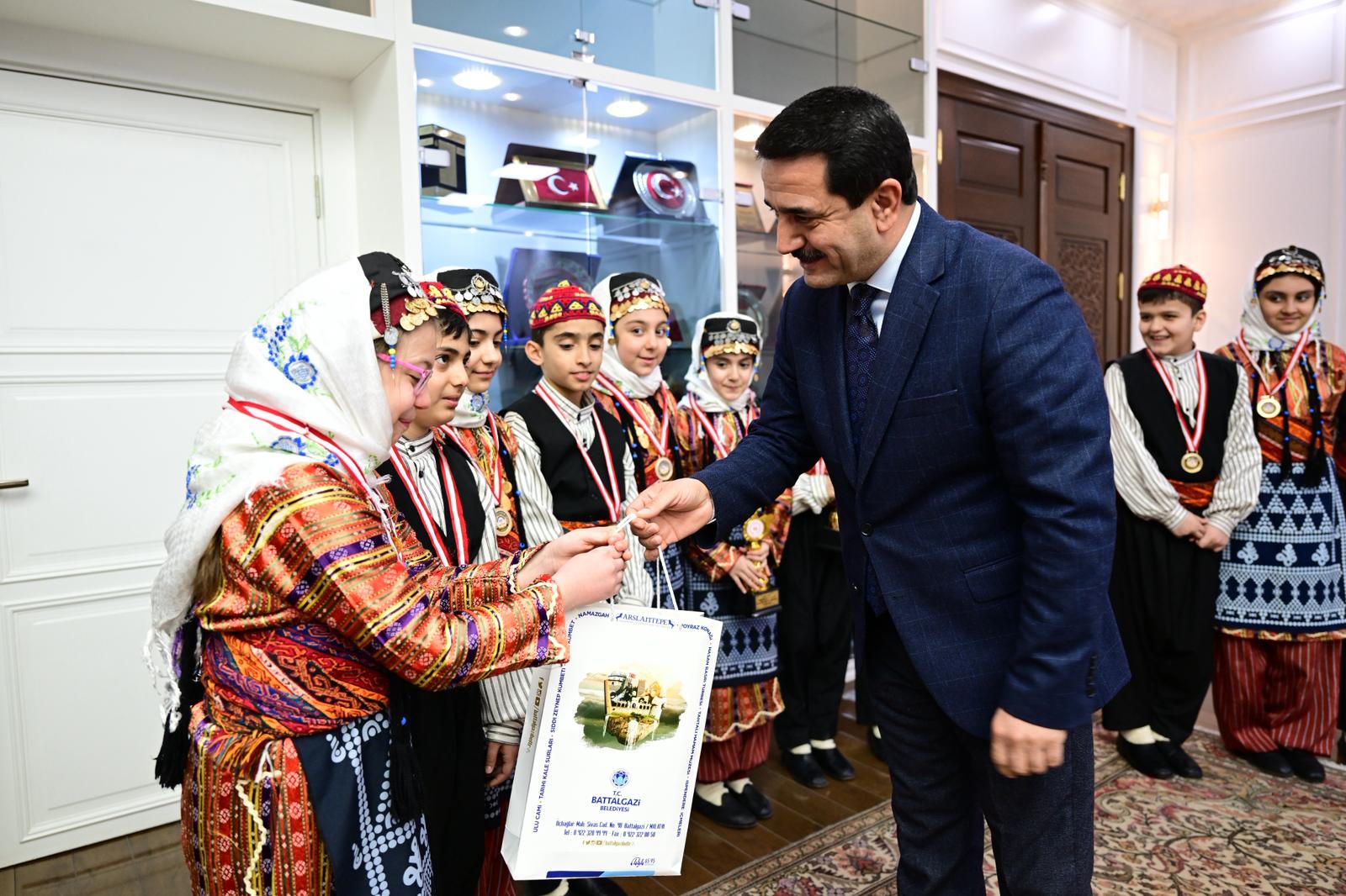 Başkan Bayram Taşkın, minik sporcuları tebrik ederek, “Gençlerimiz Battalgazi Belediyespor adına yarışarak halk oyunlarında il birincisi oldular. Bu yaşta elde edilen başarı bizler için büyük bir gurur kaynağıdır. Bölge turnuvasında da belediyemizi en iyi şekilde temsil edeceklerine inanıyorum. Gençlerimize her türlü desteği vermeye devam edeceğiz.” dedi.