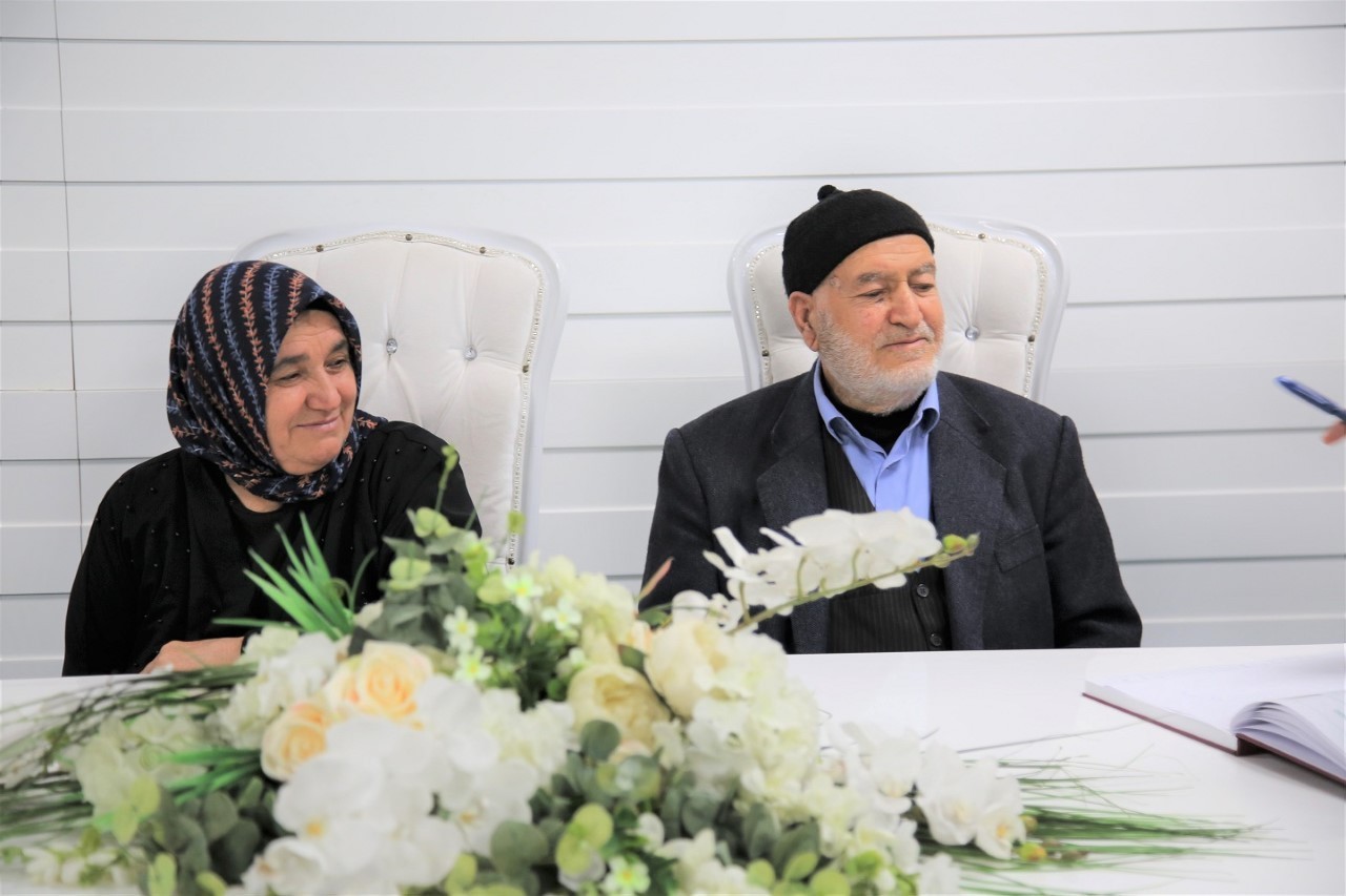 72 yaşındaki damat ile 73 yaşındaki gelin Battalgazi Belediyesi Nikah Salonunda mutluluğa "Evet" diyerek dünya evine girdi.