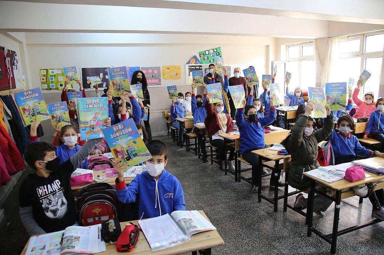 Malatya'nın Battalgazi Belediyesi tarafından çocuklara erken yaşlarda geri dönüşüm ve çevre bilinci kazandırılması amacıyla başlatılan Temiz Çevre ve Atık Eğitimi Projesi kapsamında, öğrencilere oyunlarla geri dönüşüm eğitimleri veriliyor.