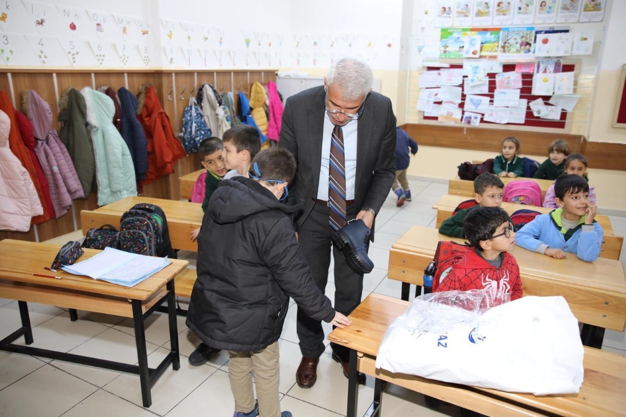Malatya'nın Battalgazi Belediyesi ve Türk Kızılayı'nın birlikte yürüttüğü çalışmalar çerçevesinde, ilçedeki kırsal mahallelerde eğitim ve öğrenim gören öğrencilere bot, mont ve kırtasiye yardımı devam ediyor.