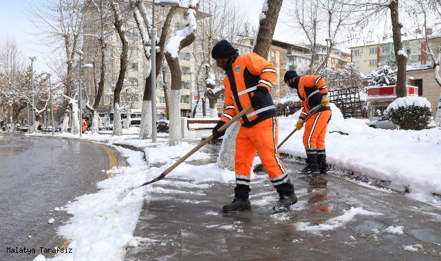 Malatya'nın Battalgazi ilçesinde etkili olan kar yağışı nedeniyle yaya ve araç trafiğinin etkilememesi için yoğun çalışma yürütülüyor.