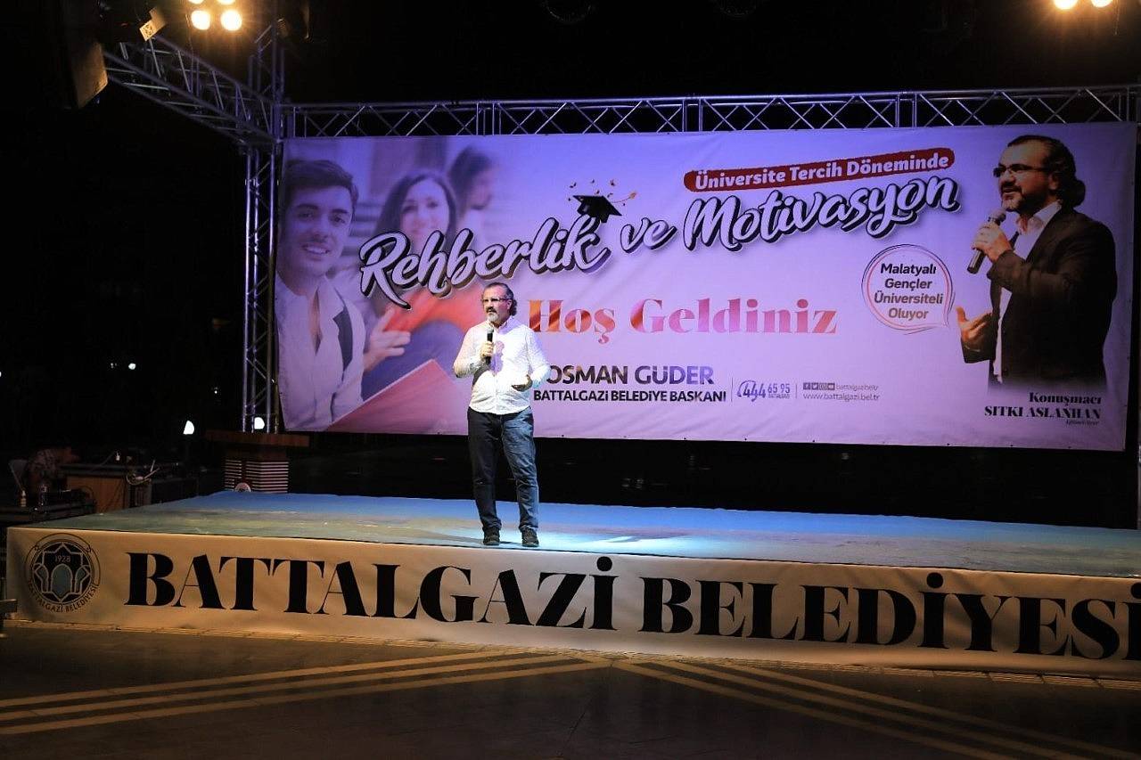 Programın açılış konuşmasını gerçekleştiren Battalgazi Belediye Başkanı Osman Güder, "Gençliği geleceğe hazırlama noktasında Battalgazi Belediyesi olarak üzerimize düşen sorumluluğu yerine getirmek için yoğun çaba gösteriyoruz. Göreve geldiğimiz ilk günden itibaren gençlerimiz için gençlik ve etüt merkezlerimizin sayısının arttırılması gerektiğini söyledik. Göreve gelir gelmez, Hanımınçiftliği'nde gençliğin ihtiyaç duyduğu bölgede merkezimizi inşa ederek hayata geçirdik. Günlük ortalama 2 bin gencin istifade ettiği bir mekanı hizmete sunduk. Geçtiğimiz günlerde merkezimizde gençlerimiz ile bir araya geldiğimiz zaman Türkiye 4 binincisinin bölgemizden çıktığını öğrendik ve bu bizi gururlandırdı. Orduzu ve TOKİ'de devam eden gençlik merkezimizi de tamamlayarak, en kısa sürede gençlerimizin istifadesine sunacağız. Amacımız gençlerimizi geleceğe hazırlamak. Her kurum düşeni yaptıktan sonra Türkiye'mizi gelecek nesillere, emin ellere teslim etmiş olacağız. Gençlerimiz zorlu bir süreci geride bıraktılar. Üniversite sınavları özellikle ülkemizde gençlerin hayat akışında bir dönüm noktası. Bu dönüm noktasında gençlerimizi ileriye ne kadar sağlıklı bir şekilde yönlendirebilirsek, onların gelecekleri daha güzel olacak. Çocuklarımızın belki bir kısmı üniversiteyi kazanacak ve istediği bölümlere girecekler, bir kısmı da giremeyecek. Battalgazi Belediyesi olarak özellikle bu tercih döneminde rehber hocalarımızı ve gençliğin abisi Eğitimci-Yazar Sıtkı Aslanhan'ı, Malatya'daki üniversite adayları gençlerimizle buluşturmak istedik. Gençlerimiz ile hasbihal etmesini istedik. Kendileri de bizi kırmadı bu davetimizi seve seve kabul ettiler. İnşallah faydalı ve güzel bir seminer olacak. Her zaman olduğu gibi tercih döneminde de gençlerimizin yanındayız, en büyük destekçileriyiz. Kendisine teşekkürlerimi sunuyorum" dedi.