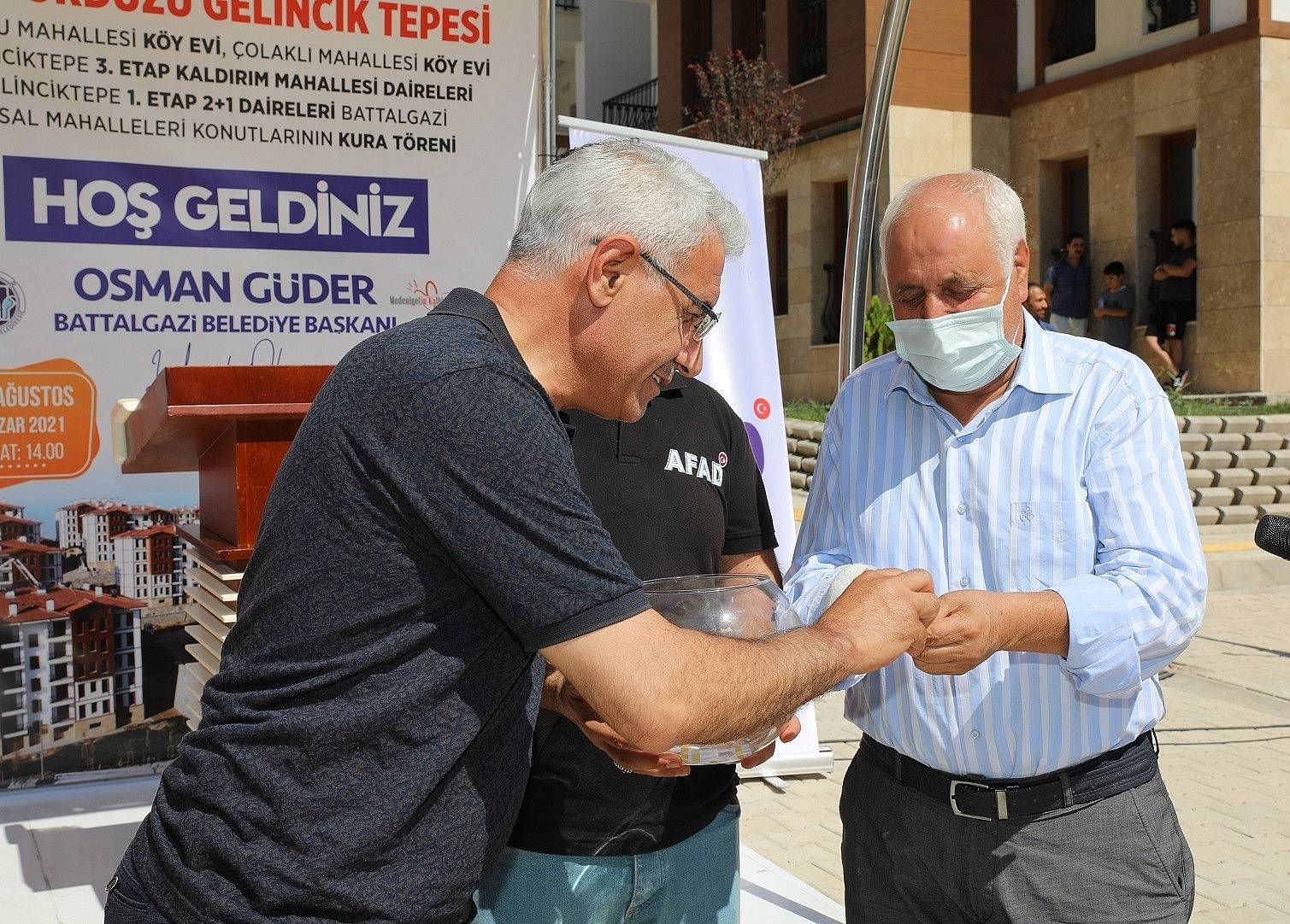Deprem konutlarının yapımında Battalgazi Belediyesi olarak büyük gayretler ortaya koyduklarını ve sonrasındaki sürecin ise en yakın takipçisi olduklarına hatırlatan Battalgazi Belediye Başkanı Osman Güder, "Kura çekiminin hayırlı olmasını ve vatandaşlarımızın konutlarında sıkıntısız bir hayat sürmelerini Cenab-ı Allah'tan niyaz ediyorum. Gelincik tepesini tercih etme sebebini daha önce açıklamıştık. Gelincik Tepesi'ni tercih etmemizin en büyük nedeni; fiziki ve jeolojik olarak zemin etüdünün sağlam olmasıdır. Burada sadece 1'nci etap yerinde 650 bin metreküp hafriyat çıkarıldı. Burada ciddi bir emek harcandı. İnşallah burada kısa sürede eğitim alanlarının temeli atılacak. İbadet alanları ile sosyal tesisleriyle inşallah burası Malatya'nın en güzel yerleşkelerinden bir tanesi olacak. İlk günden itibaren Battalgazi'de yapılan deprem konutlarının Gelincik Tepesi'nde olmasını talep ettik. Depremzede ailelerin mağdur olmaması için 24 Ocak'tan bu yana Battalgazi Belediyesi olarak sürecin en yakın takipçisi olduk, olmaya devam ediyoruz. Bugün Battalgazi'deki depremzede ailelerin yüzleri gülüyor. Vatandaşlarımızın yüzünün gülmesi bizim için her şeyden daha değerli. Cumhurbaşkanımız Recep Tayyip Erdoğan başta olmak üzere emeği geçen herkese teşekkürlerimi sunuyorum" dedi.