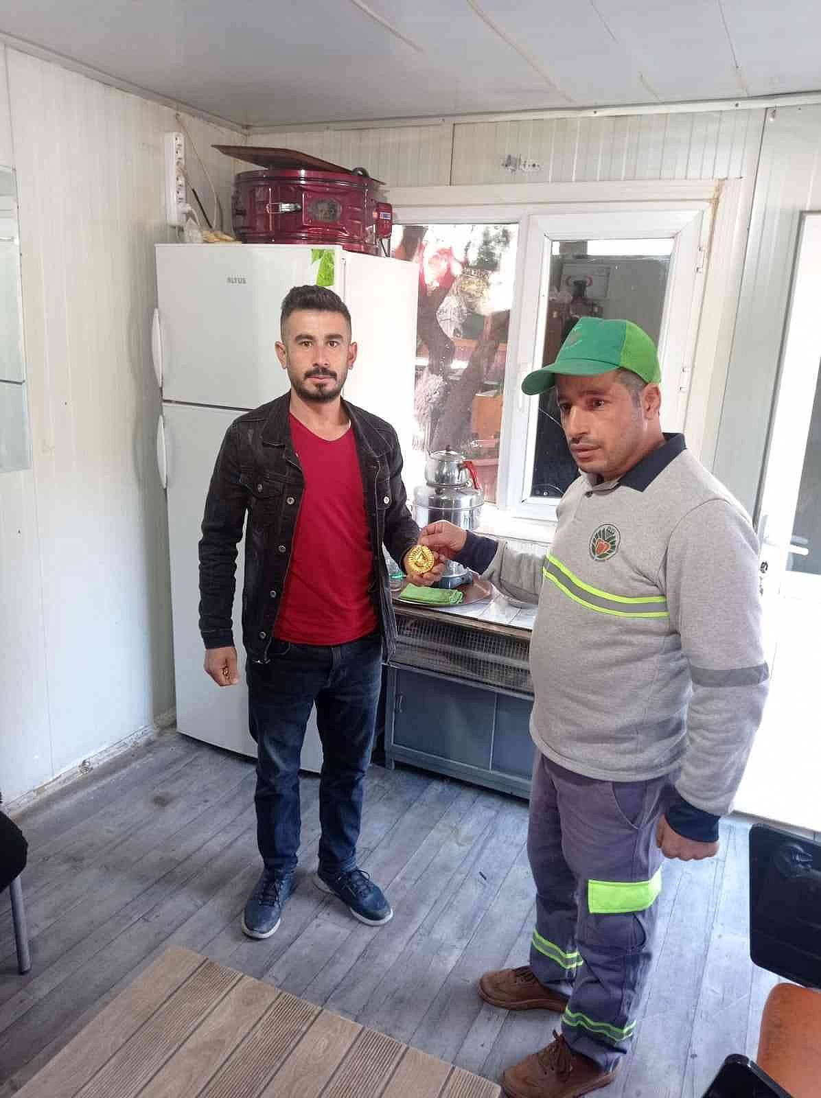 Malatya'da asgari ücretle çalışan Erkan Malkoç, görev yaptığı parkta bulduğu ve maaşının 2-3 katı değerindeki altın tuğrayı sahibine teslim etti.