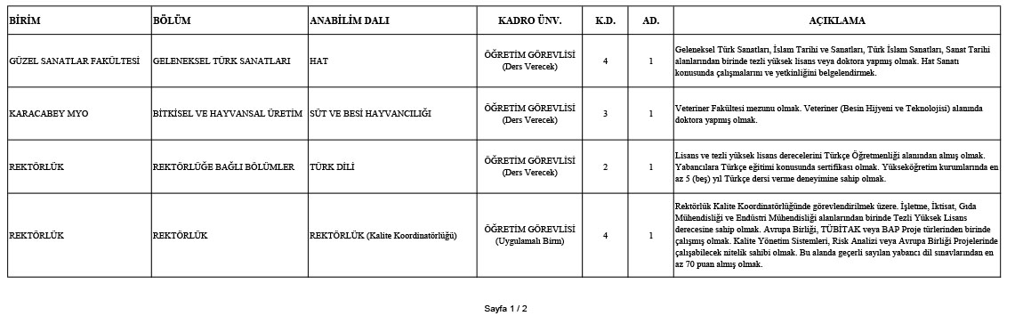 Üniversitemize “Öğretim Üyesi Dışındaki Öğretim Elemanı Kadrolarına Yapılacak Atamalarda Uygulanacak Merkezi Sınav ile Giriş Sınavlarına İlişkin Usul ve Esaslar Hakkında Yönetmelik”in ilgili maddeleri uyarınca Öğretim Görevlisi alınacaktır.