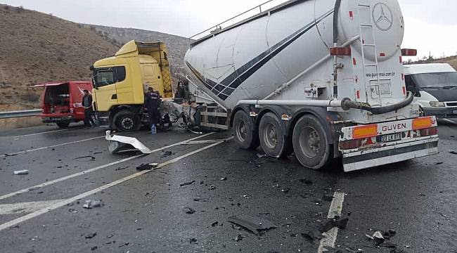 Kaza, Malatya-Kayseri karayolu Akçadağ ilçesi mevkiinde meydana geldi. Edinilen bilgilere göre, F.P. idaresindeki 46 AAU... plakalı otomobil ile V.D. yönetimindeki 23 LK ... plakalı çimento yüklü tır Doğanlar Mahallesi mevkiinde çarpıştı. Kazada araçta sıkışan otomobil sürücüsü yaralandı. İhbar üzerine olay yerine jandarma, sağlık ile itfaiye ekipleri sevk edildi. Araçta sıkışan yaralı üşürücü itfaiyenin yaklaşık 15 dakikalık bir çalışması sonrasından bulunduğu yerden çıkarıldı.