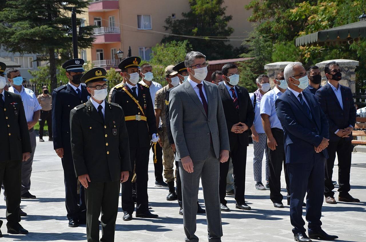 Atatürk Anıtına çelenkler sunulması, saygı duruşu ve İstiklal Marşının okunmasından sonra günün anlam ve önemini anlatan konuşmayı Garnizon Komutanı Yusuf Can Altunışık yaptı. Altınışık, Zafer Bayramı'nın önemine temas ederek, " Bugün Türkiye Cumhuriyeti'nin kurulması ve 30 Ağustos 1922 de kazandığımız büyük zaferin 99. yılını kutlamanın ulusça gurur ve heyecanını yaşıyoruz. Ayrıca Türk milleti kahraman Türk ordusuyla birlikte Bayrağına ve Vatanına kastedenlere karşı 99 yıl önce kahramanlık şeref dolu tarihinden aldığı kudretiyle yeniden dirilerek topyekün varoluş mücadelesi sonucunda tarihte eşine az rastlanan bir zafer kazanmıştır. Aziz yurduna ve bağımsızlığına kasteden işgal kuvvetleri karşısında Türk ordusunun ortaya koyduğu eşsiz bir eser olan bu zafer tek tek düşünülmüş ve hazırlanmış ve yönetilmiştir" dedi.