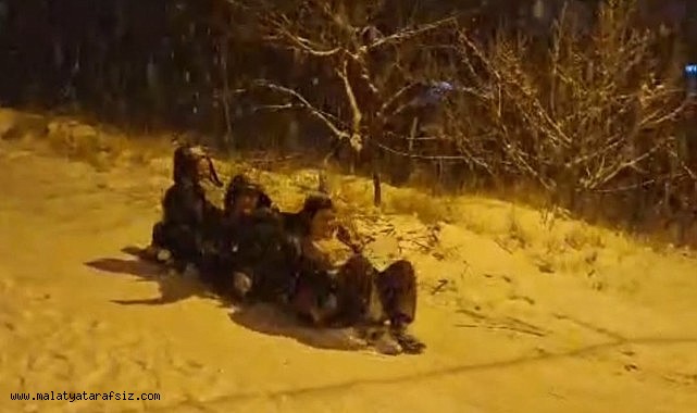 Bir süredir Malatya genelinde etkili olan kar yağışı kenti beyaza büyürken, Darende'nin Nadir Mahallesi'nde kar yağışını fırsata çeviren bazı vatandaşlar ise poşet ve kartonlarla kayarak karın keyfini çıkardı. Özellikle çocukların eğlenceli anları renkli görüntüler oluşturdu.