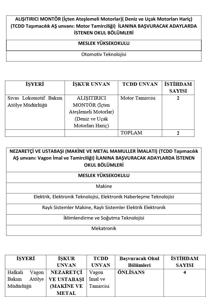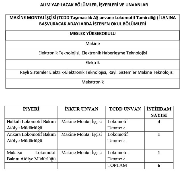 LOKOMOTİF TAMİRCİSİ ADAYLARI İÇİN;
