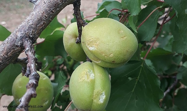 Malatya'nın Akçadağ ilçesinde etkili olan dolu yağışının vurduğu kayısı bahçelerinde zarar büyük.