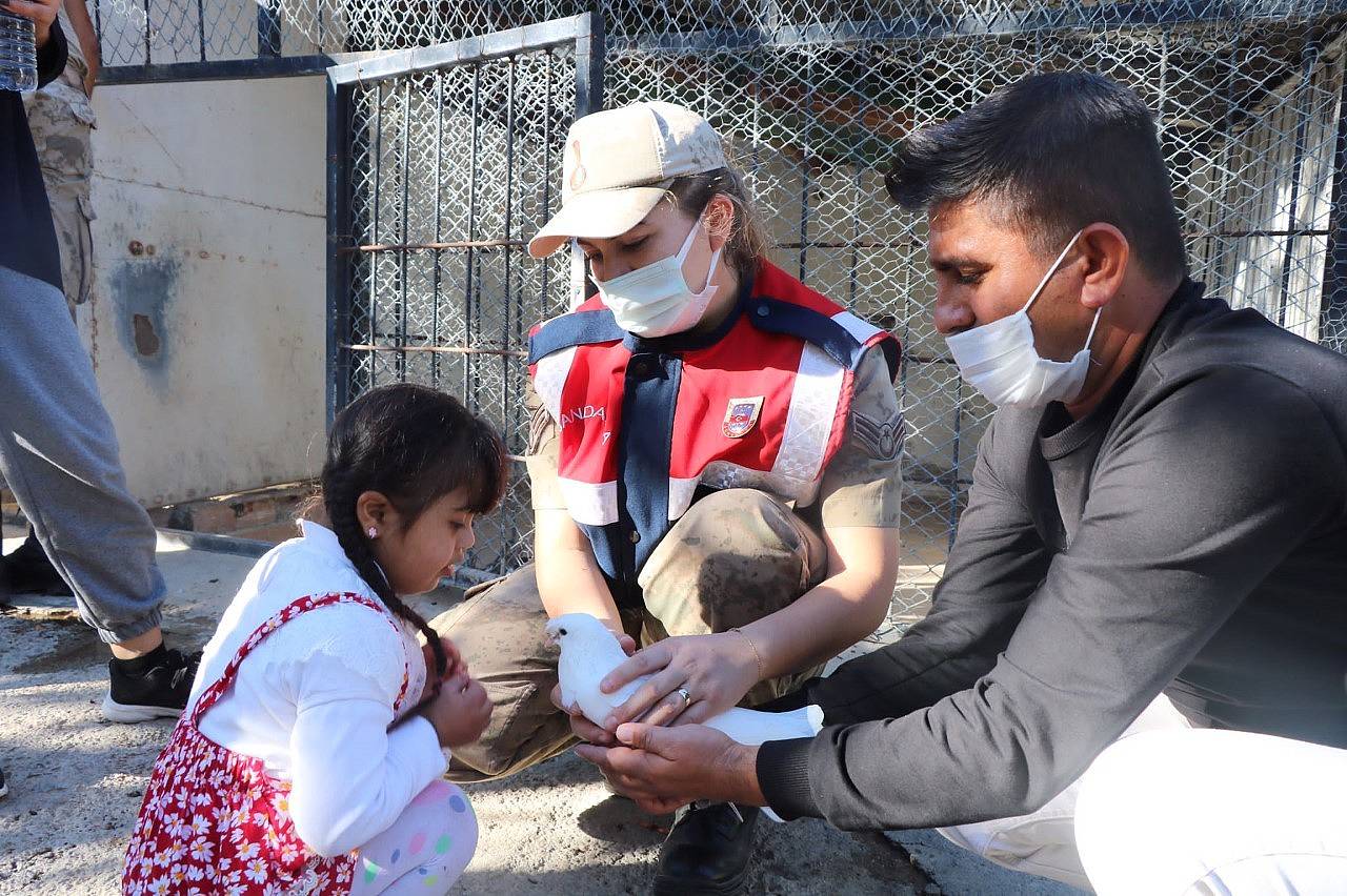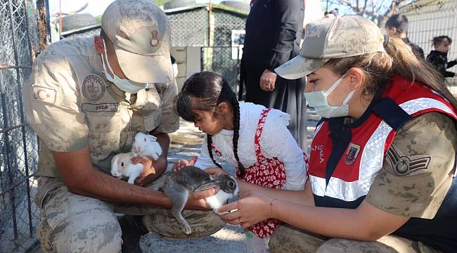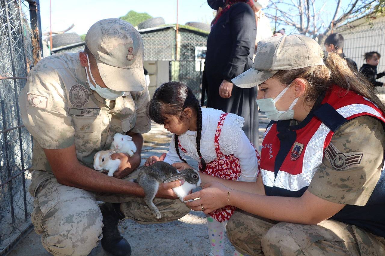 Jandarma Komutanlığı görevlileri, Down sendromlu çocukları hayvanlar ile buluşturarak, ilgi gösterdiler.