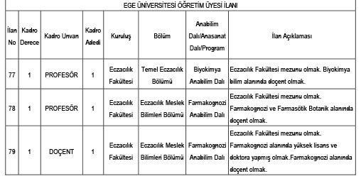 3- Hizmet Belgesi 4- Ege Üniversitesi Öğretim Üyesi Başvuru Koşullarına https://personeldb.ege.edu.tr/tr1655/akademik_kadro_ve_tayin_isleri_-_ogretim_elemani_basvuru_kosullari.html adresinden ulaşılabilir. 5- İlanımız “www.ege.edu.tr” adresinde yayınlanacaktır.