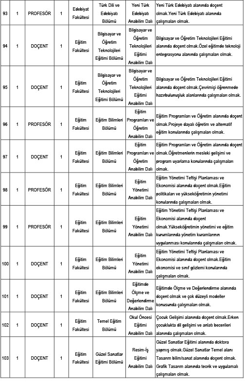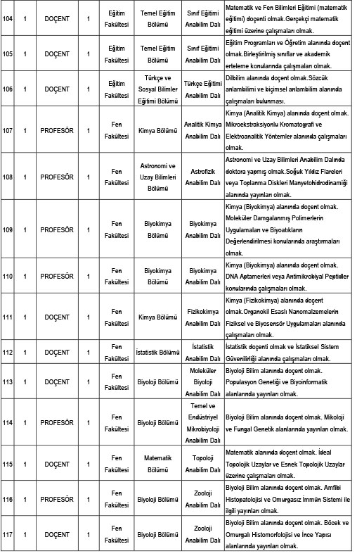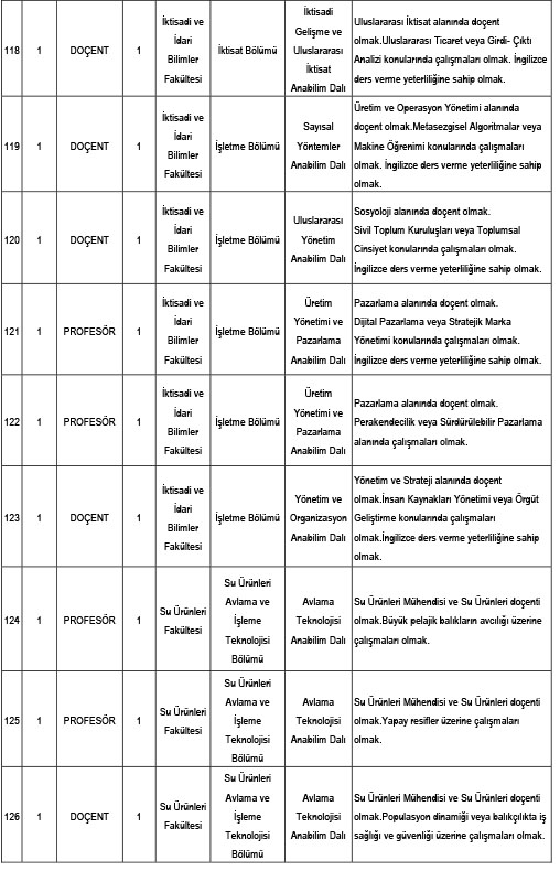 Üniversitemizin aşağıda belirlenen birimlerine 2547 sayılı Yükseköğretim Kanunu ve Öğretim Üyeliğine Yükseltilme ve Atanma Yönetmeliğinin ilgili maddelerine göre öğretim üyesi alınacaktır.