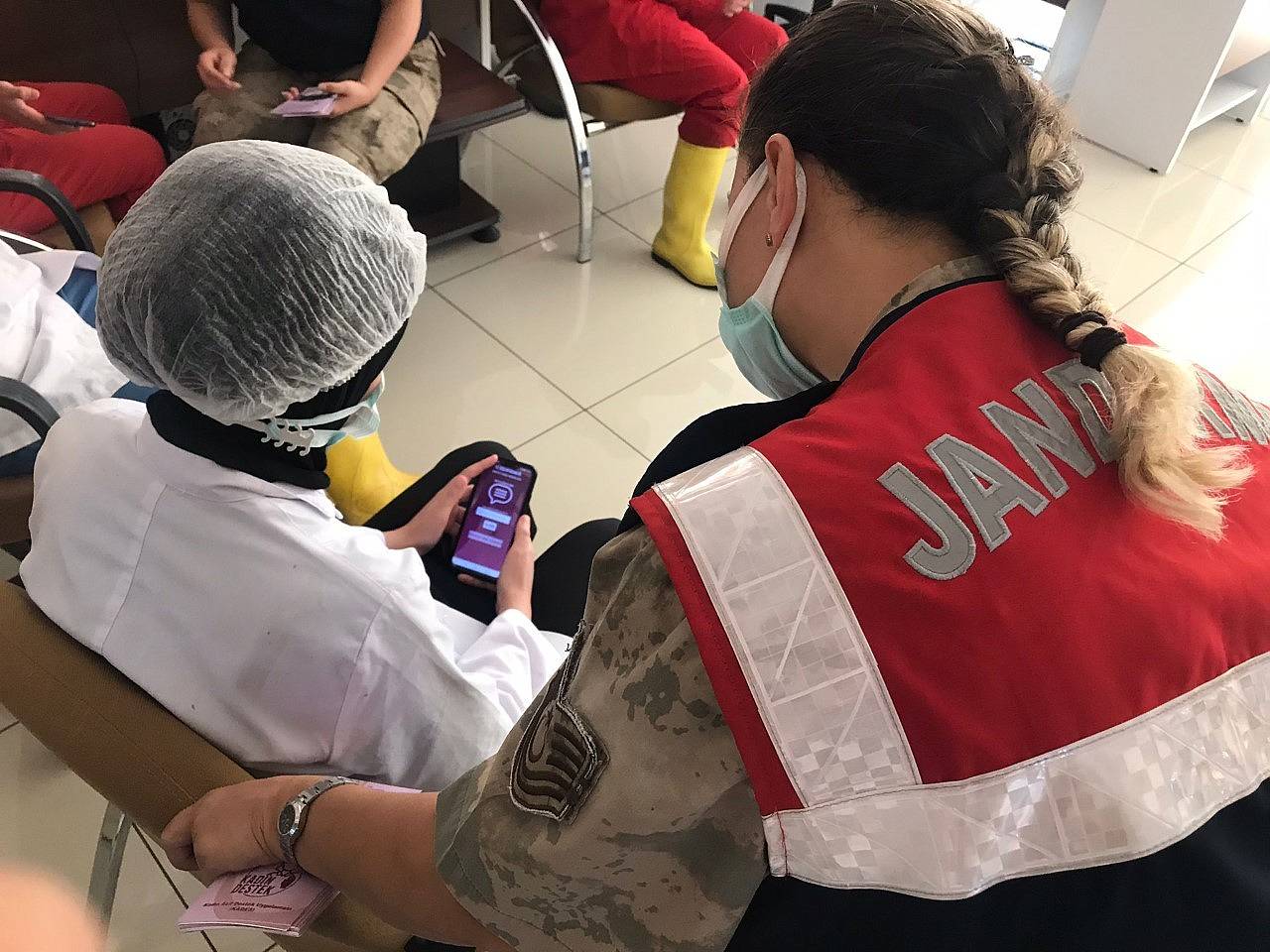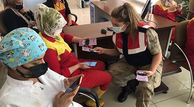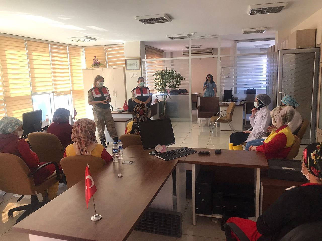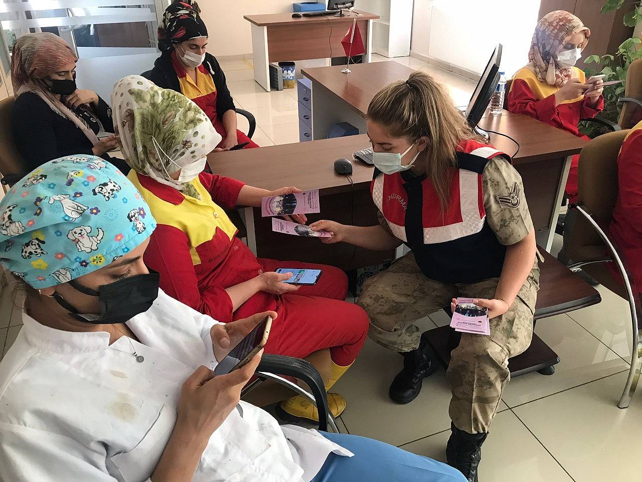 Malatya İl Jandarma Komutanlığı görevlileri tarafından fabrika çalışanı kadınlara KADES tanıtıldı.