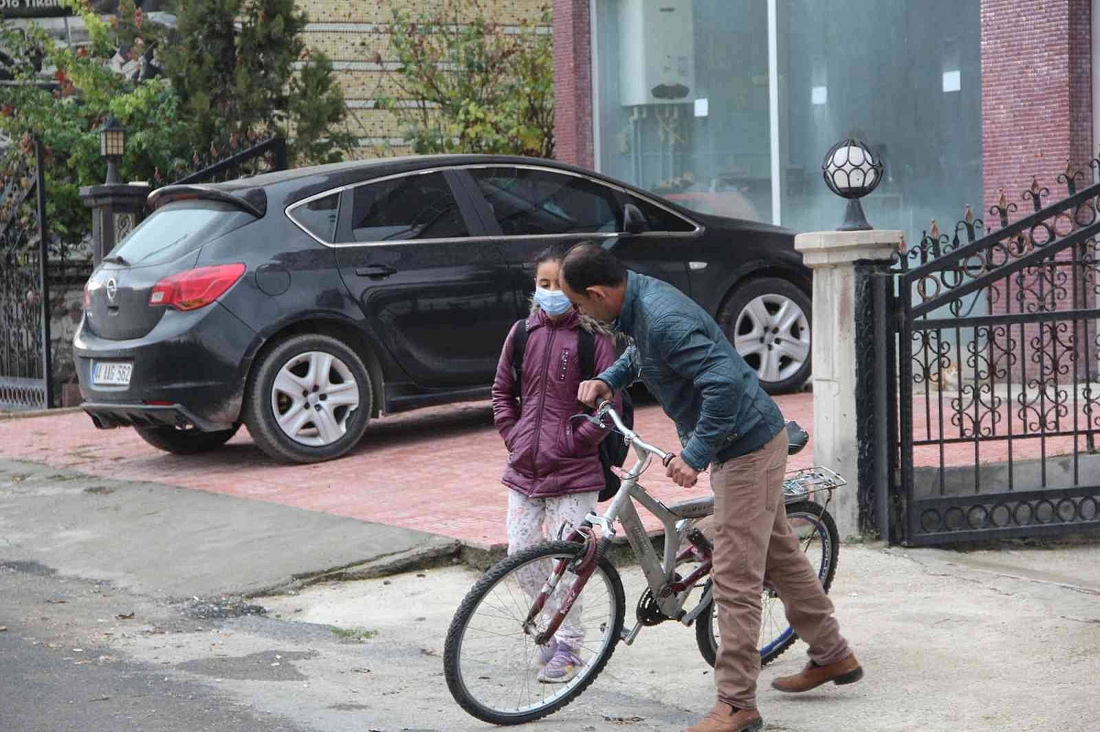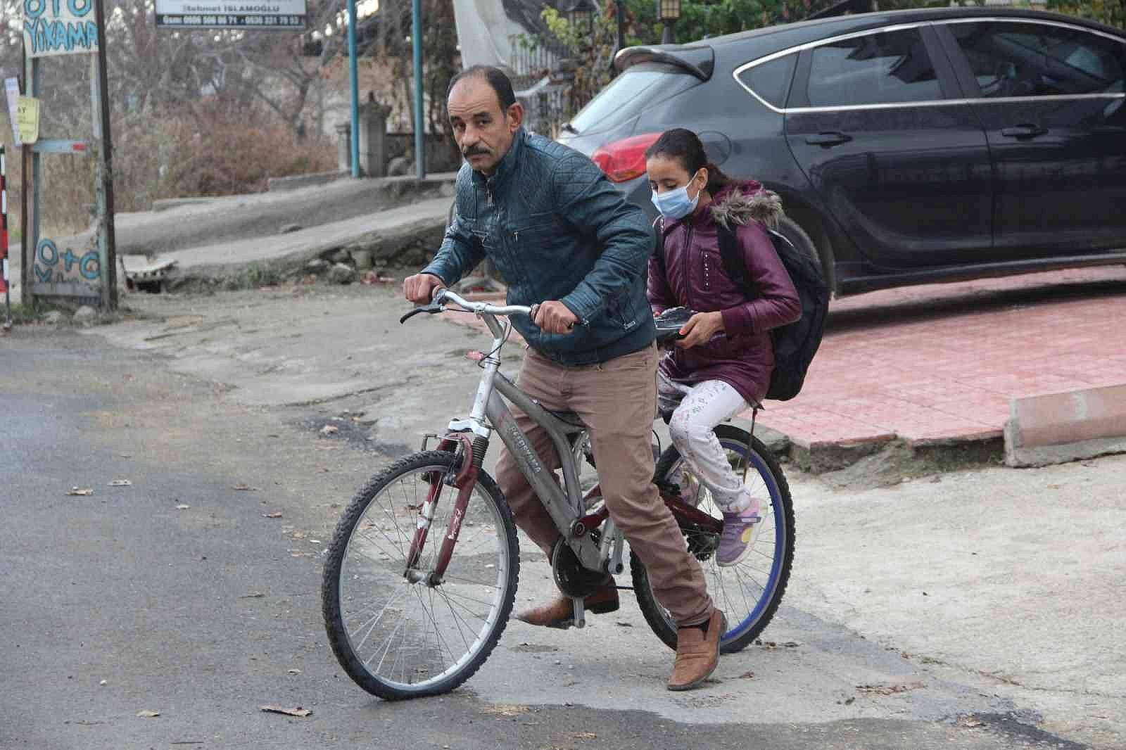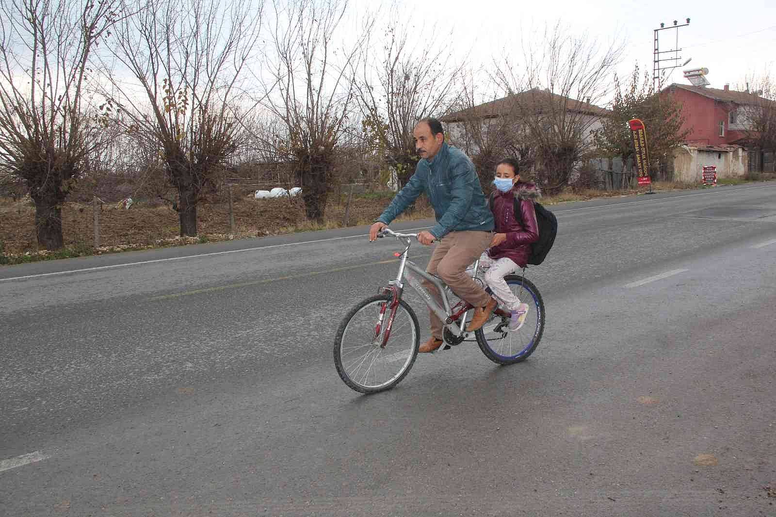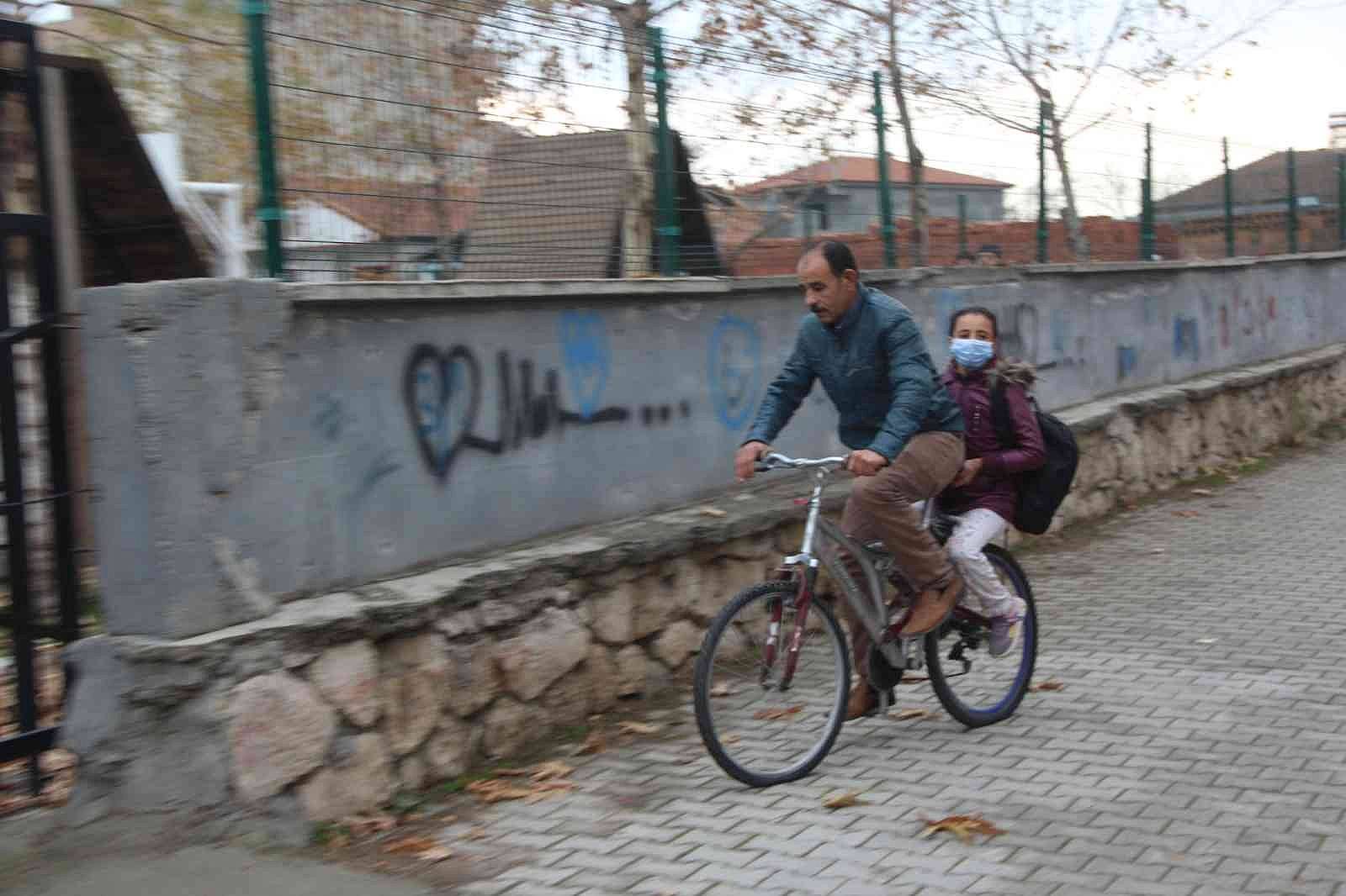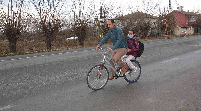 Malatya'nın Yeşilyurt ilçesine bağlı Dilek mahallesinde yaşayan Suriye uyruklu baba Bedran Hamed, yürüyemeyen kızı Aya'yı her sabah bisikleti ile eğitim gördüğü Şehit Hasan Yıldırım İmam Hatip ortaokuluna götürüp getiriyor.