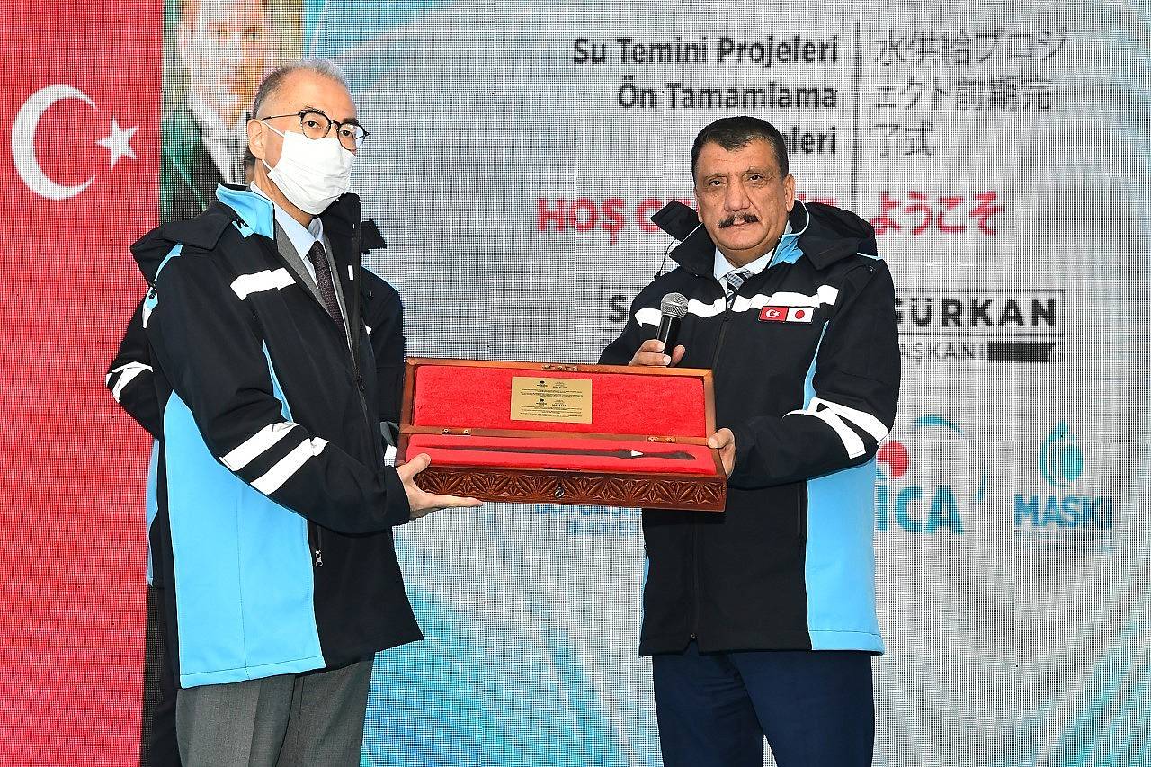 Yapılan konuşmaların ardından 600 milyonluk dev yatırımların kurdelesi kesildi. Gürkan açılışın anısına Japonya Büyükelçisi Suzuki Kazuhiro ile JICA Türkiye Ofisi Başkanı Nobuhiro Ikuro, Arslantepe'de çıkan kılıçların sembollerinden oluşan kılıç seti hediye etti. İller Bankası Genel Müdür Yardımcısı Emrah Baydemir'e hediyelerini ise Baruş verdi.