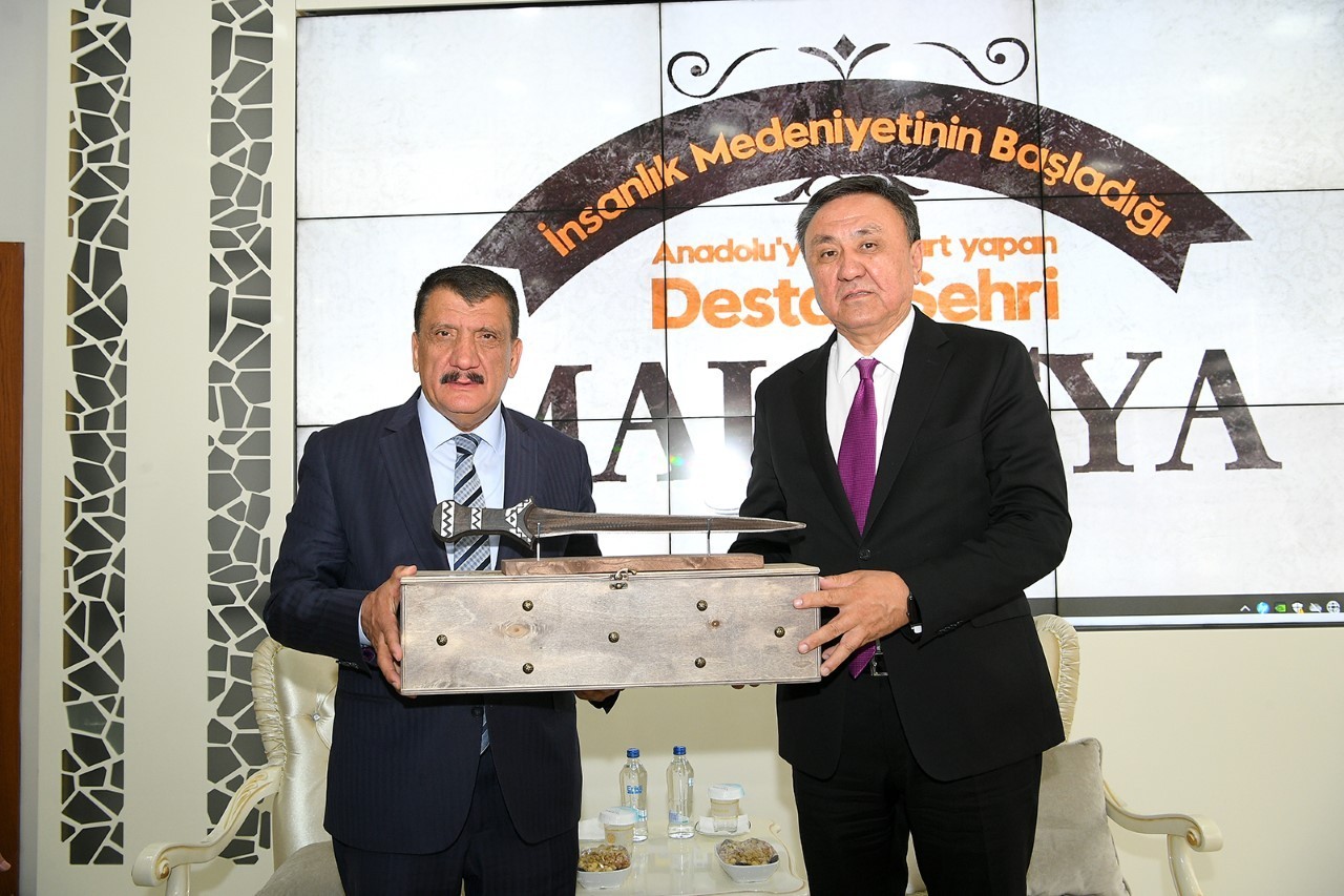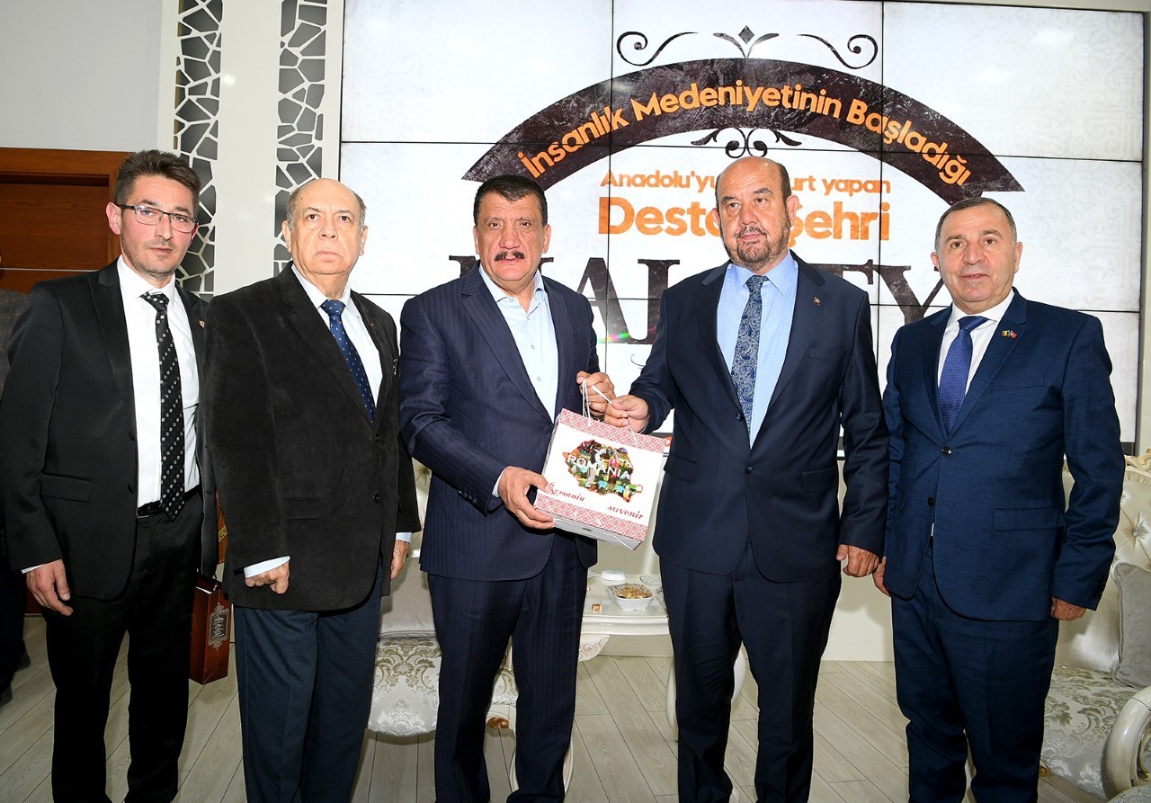 Malatya Büyükşehir Belediye Başkanı Selahattin Gürkan, Malatya'da bulunan Kırgız Cumhuriyeti Ankara Büyükelçisi Kubanıçbek Ömüraliyev, Kuzey Kıbrıs Türk Cumhuriyeti Gaziantep Konsolosu Fahri Uluer ile birlikte Romanya'dan gelen iş insanlarını ve gazetecilerle bir araya geldi.