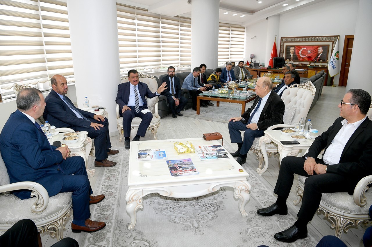 15.GAP Oscar ödülleri programına katılmak için Malatya'ya gelen Kırgız Cumhuriyeti Ankara Büyükelçisi Kubanıçbek Ömüraliyev, Kuzey Kıbrıs Türk Cumhuriyeti Gaziantep Konsolosu Fahri Uluer ile birlikte Romanya - Türk Romen İş Adamları Sanayi Odası Başkanı Tamer Atalay, Romanya Gazeteciler Federasyonu Başkanı Sorin Stancui ile GAP Gazeteciler Birliği Genel Başkanı Zeynel Abidin Kıymaz ve yönetim kurulu üyeleri Başkan Gürkan'ı makamında ziyaret etti.