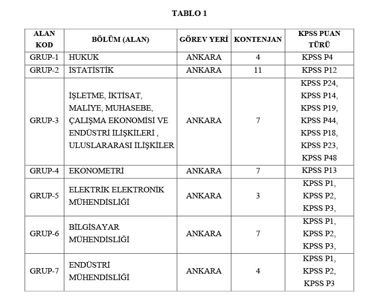 TABLO 1 ve TABLO 2’de belirlenen her alan için kontenjan sayısının 10 (on) katından fazla başvuru olması halinde sınava katılmaya hak kazanan aday, giriş sınavına başvurduğu KPSS puanına göre sıralama yapılmak suretiyle belirlenecektir.