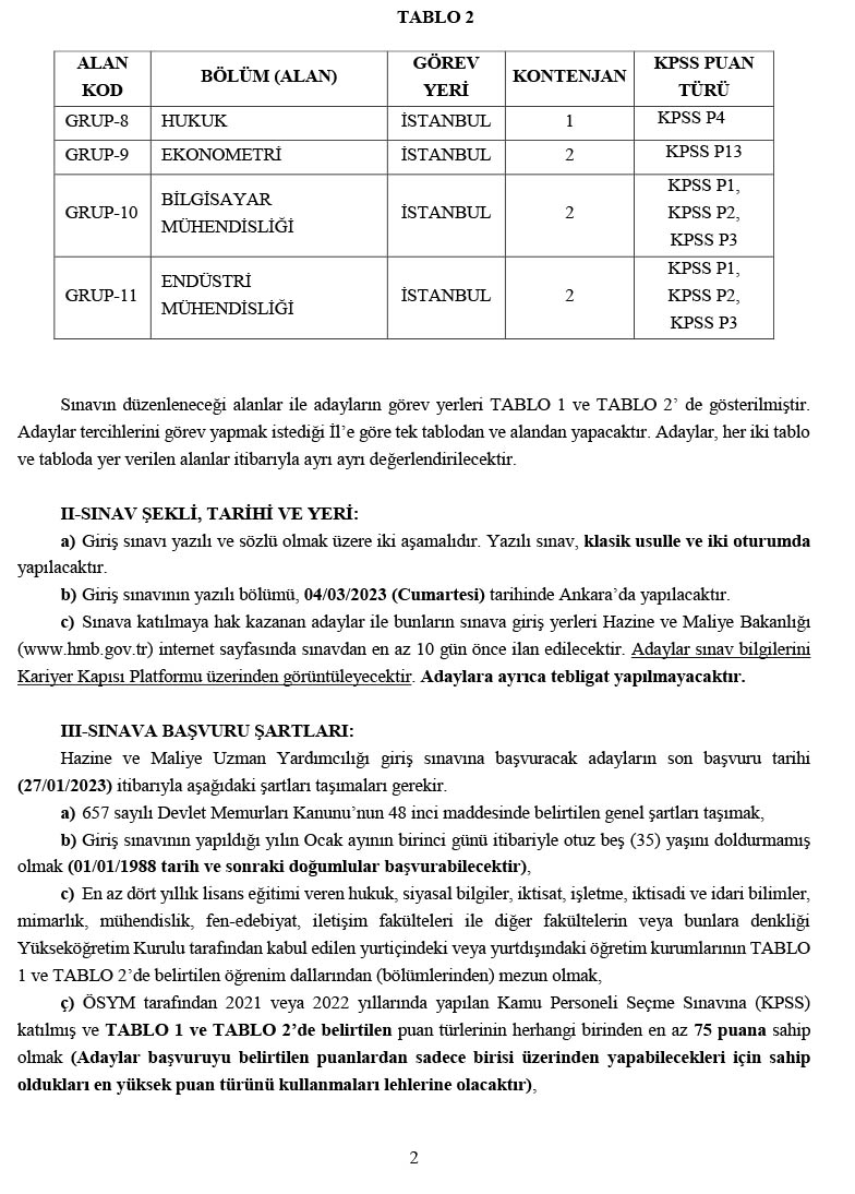 HAZİNE VE MALİYE UZMAN YARDIMCILIĞI GİRİŞ SINAVI DUYURUSU