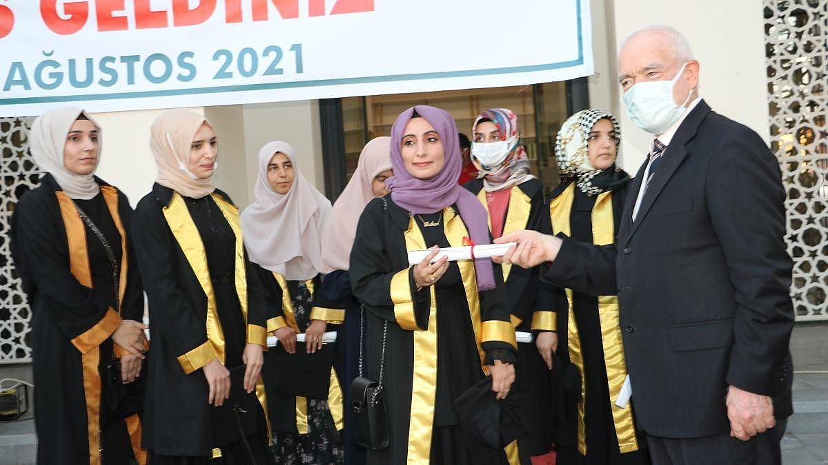 Kızılay ve Karaman'ın konuşmalarını ardından Kur'an-ı Kerim tilaveti, ilahi dinletisi ve mezun öğrencilere diploma takdimi ile devam eden program, kep atma töreni ile sona erdi.