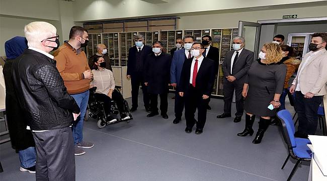 Merkez kütüphane zemin katında sistemi kullanan engelli öğrencilerin uygulamalarını yerinde inceleyen Rektör Kızılay, engelli bireylere en güzel hediyeyi vermeye çalıştıklarını vurgulayarak, "Bugün kütüphanemizdeki dört yeni bilgisayarın görme engelli kardeşlerimizin hizmetine sunulmasından memnuniyet duyuyorum. Sizlerin bu sistemlerle başarılı okumalar yapmasını temenni ediyorum. Bugün 3 Aralık Dünya Engelliler Günü vesilesiyle sizlere hayatınızı kolaylaştıracak en güzel hediyelerden birini vermeye çalıştık" şeklinde konuştu.