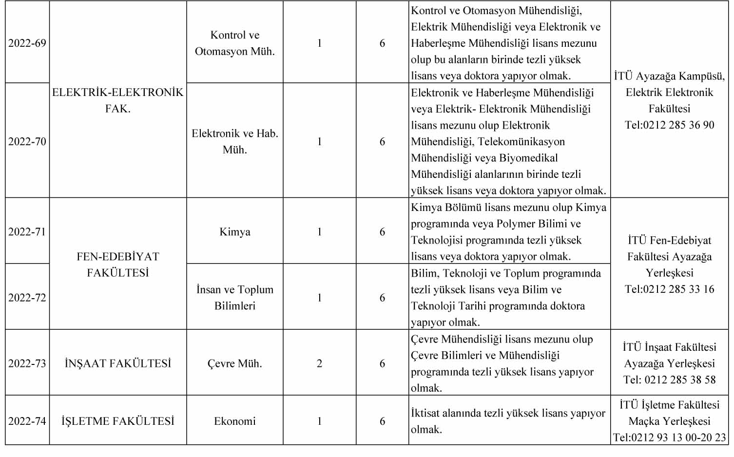 Adayları ilgilendiren başvuru ve atama süreci ile ilgili tüm bilgilendirmeler Üniversitemizin web sayfasından (https://www.itu.edu.tr/duyurular) yapılacak olup adaylara ayrıca yazılı tebligat yapılmayacaktır.