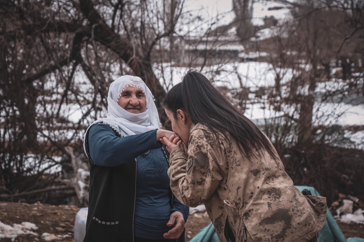 Malatya'da kadın Jandarma görevlileri, Yaşlılar Haftası nedeniyle köyde yaşayan yaşlıları ziyaret etti.