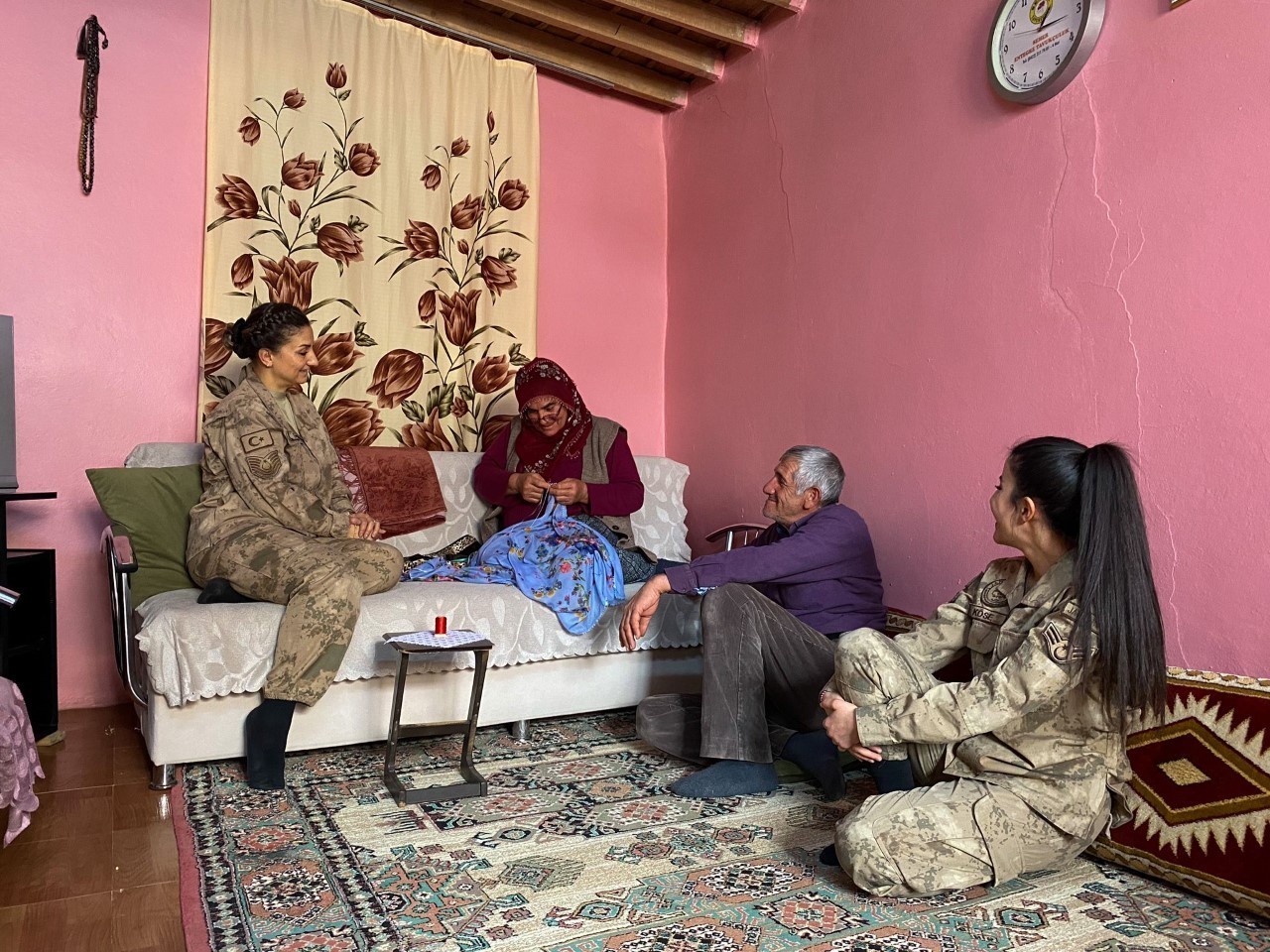 Malatya İl Jandarma Komutanlığı Aile İçi Şiddetle Mücadele ve Çocuk Kısım Amirliği ve İdari kısım Amirliği kadın görevlilerince, Yeşilyurt İlçesi Kadiruşağı Mahallesi'nde yaşlı vatandaşlar ziyaret edildi.