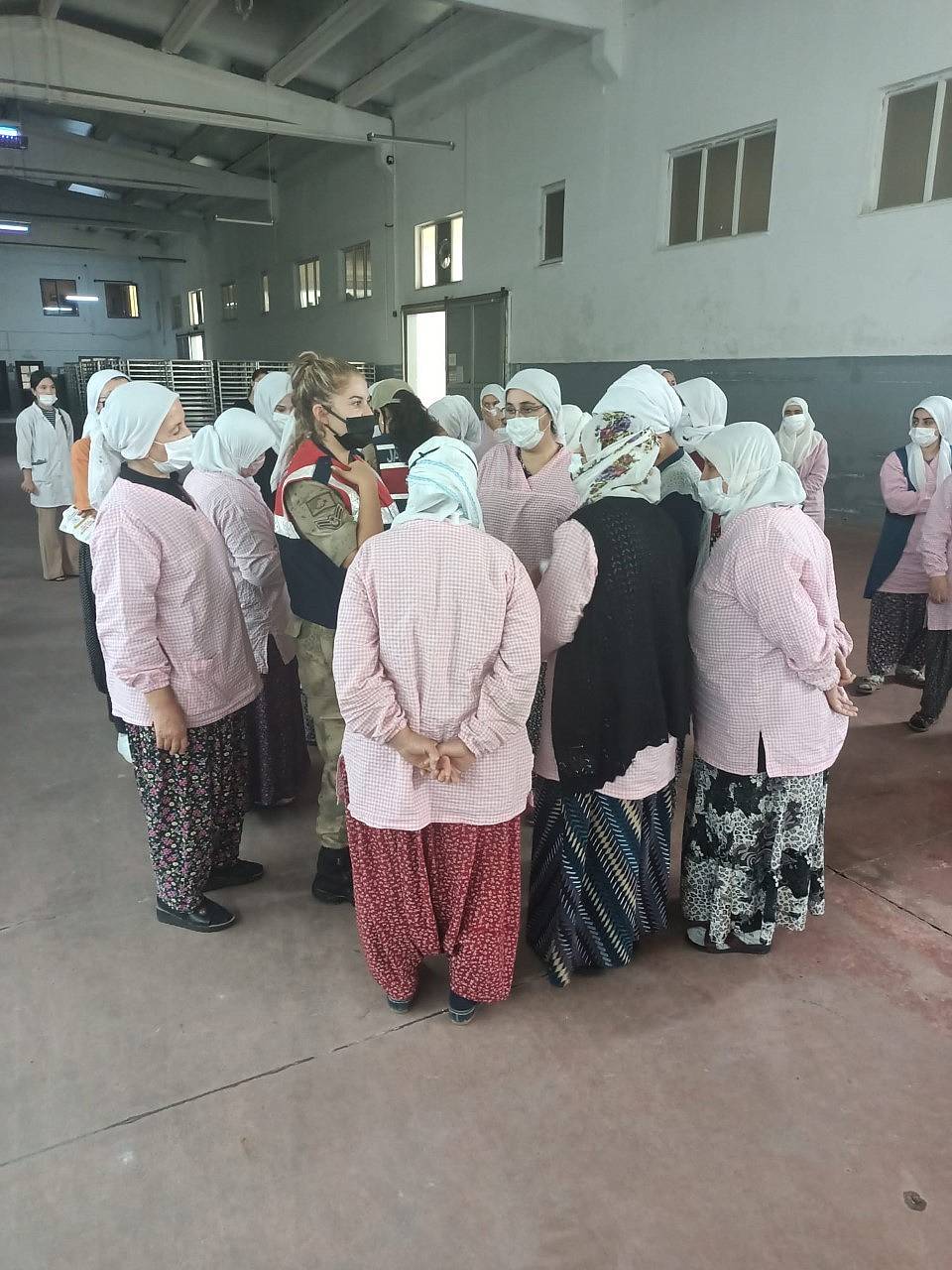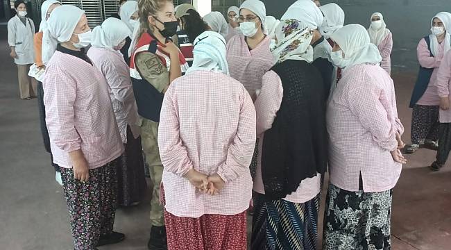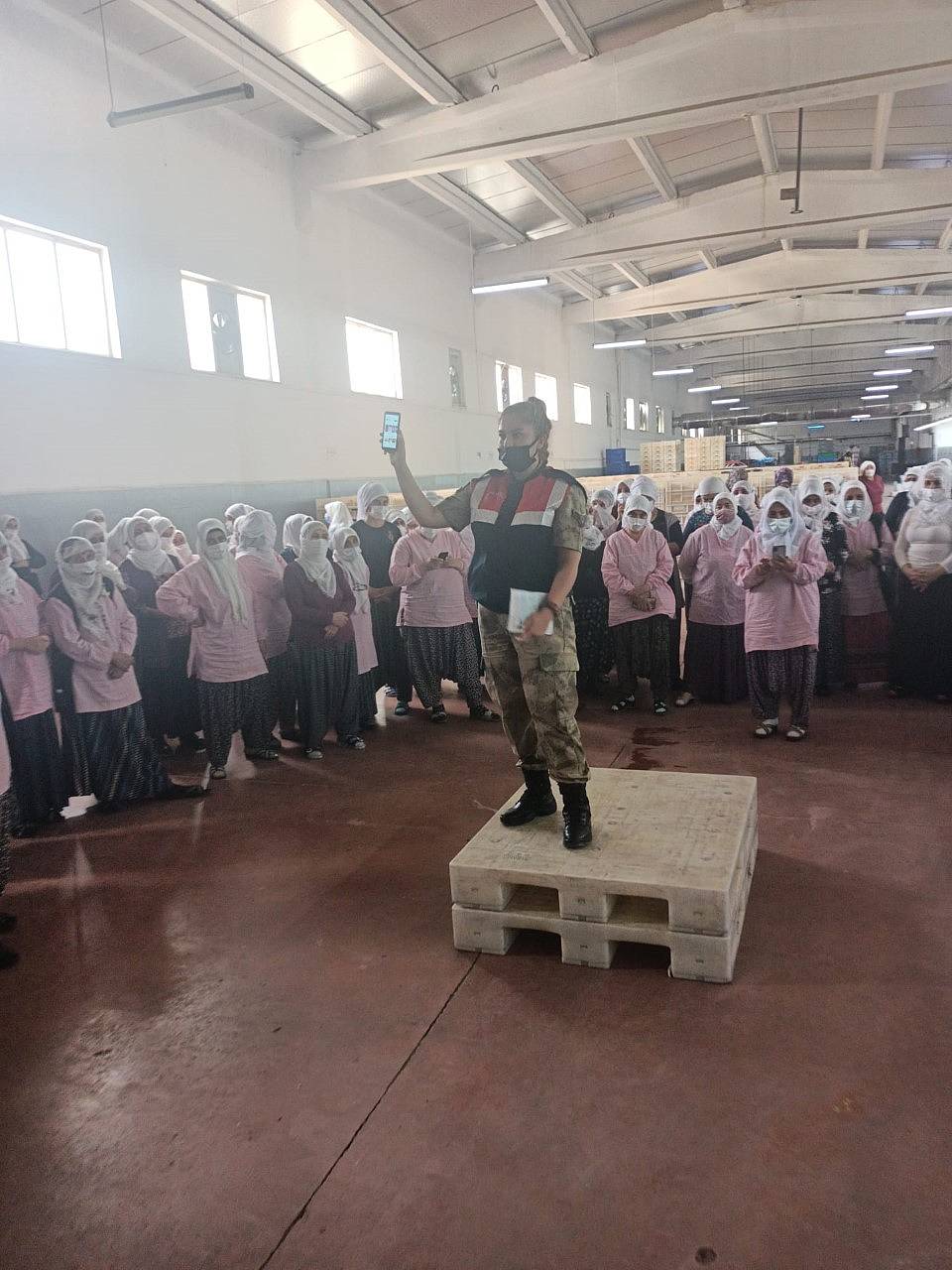 Malatya'da jandarma ekipleri, kayısı paketleme işçisi kadınlara KADES anlatılarak, kadınların cep telefonlarına KADES uygulaması yüklendi.