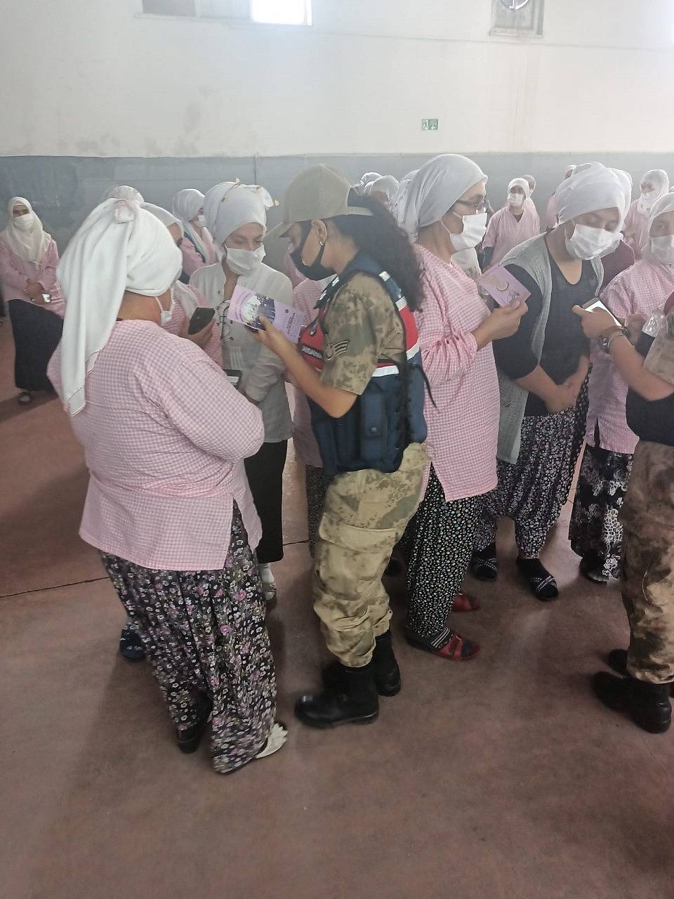 Jandarma kadın görevlileri ayrıca 6284 sayılı kanun hakkında bilgilendirme yaparak konu ile ilgili broşür dağıtımı gerçekleştirdi.