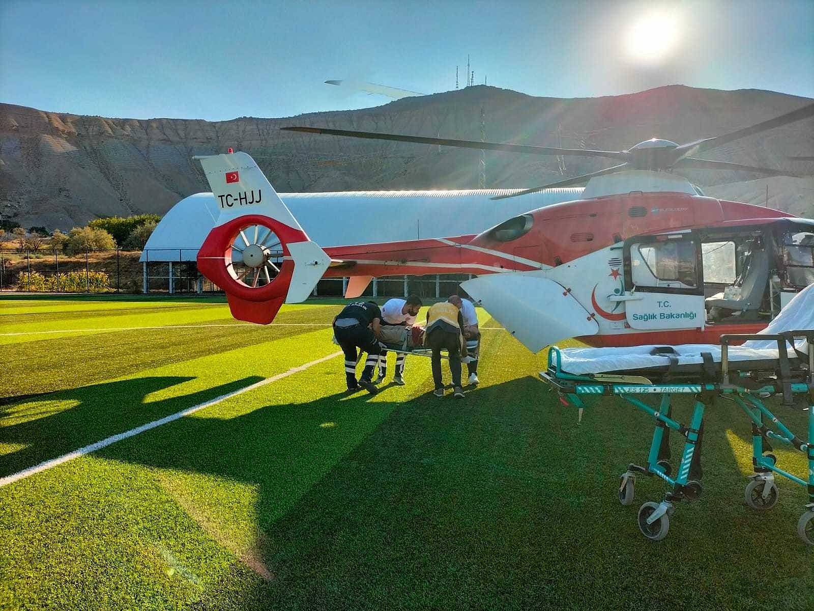 Malatya'nın Darende ilçesinde kazaen bıçakla parmağını kesen ve kan kaybı yaşayan şahıs, il merkezindeki hastaneye hava ambulansıyla yetiştirildi.