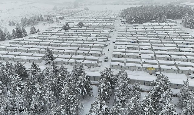Kar yağışıyla birlikte havadan görüntülenen ilçede yetkililer sürücüleri ve vatandaşları kar yağışı nedeniyle dikkatli olmaları konusunda uyardı.