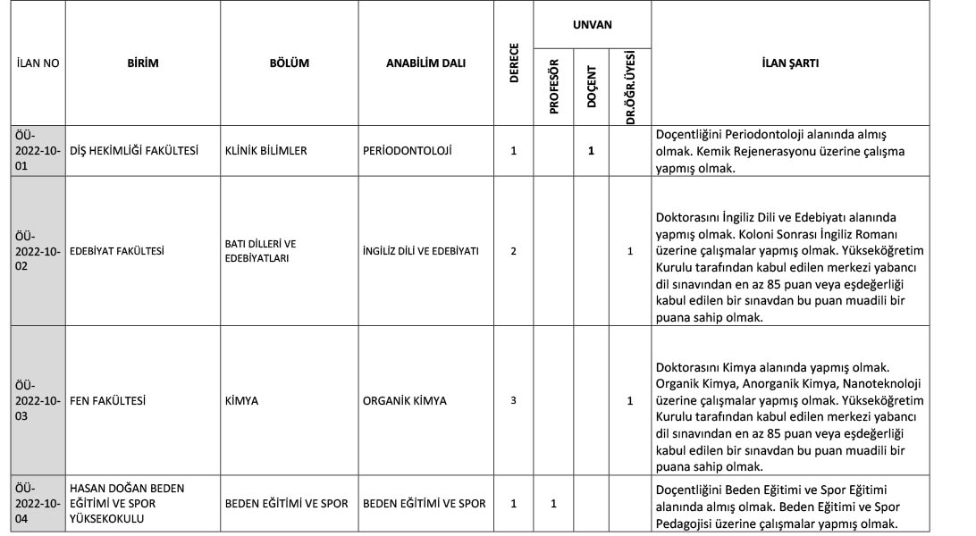 Gerekli görülmesi halinde Rektörlükçe ilanın her aşaması iptal edilebilir. Son başvuru tarihi ilanın Resmî Gazete’de yayımlandığı tarihten itibaren 15 (on beş) gündür. Başvuru süresi içinde yapılmayan başvurular ile eksik ya da yanlış yapılan başvurular kabul edilmeyecektir. İlanda belirtilen kadrolardan birden fazla kadroya başvuran adayların başvuruları geçersiz sayılacaktır.