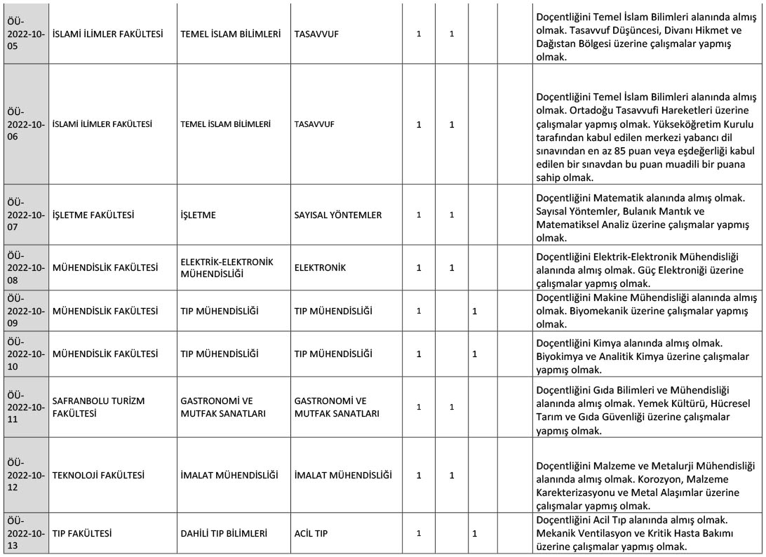 Üniversitemizin aşağıda belirtilen birimlerine, 2547 sayılı Yükseköğretim Kanunu'nun ve Öğretim Üyeliğine Yükseltilme ve Atanma Yönetmeliği'nin ilgili maddeleri, Yükseköğretim Kurulu Başkanlığının web sayfasında yayımlanarak yürürlüğe giren “T.C. Karabük Üniversitesi Öğretim Üyeliğine Yükseltilme ve Atanma Esasları” ile 657 sayılı Devlet Memurları Kanunu’nun 48. maddesinde belirtilen şartları sağlamış olmak koşulu ile öğretim üyesi alınacaktır.