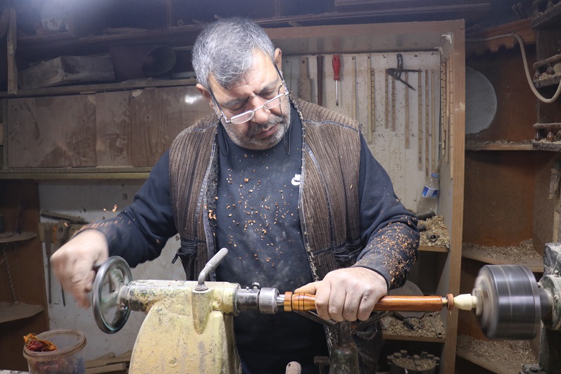 Alanya'da öğrendiği mesleği sürdürmek için 30 yıl önce Malatya'ya geldiğini kaydeden Çiçek," Adıyaman doğumluyum. Mey, zurna, zurna borusu, zurna kamışı yapımını Alanya'da öğrendim. Torna aldım kendime, hocasız yetiştim. Daha sonra Malatya'ya geldim, çünkü orada kayısı ağacı fazla bulunmuyordu. Bütün meyler, balabanlar, tokmaklar kayısı ağacından yapılıyor. Burada ekmeğimizi çıkarıyoruz" dedi.
