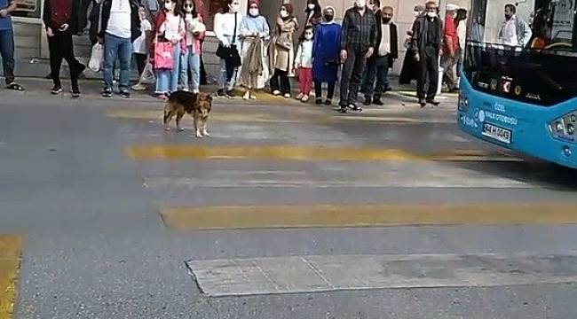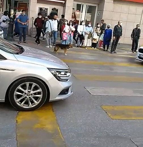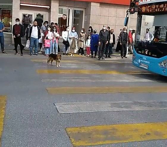 3. Kırmızı ışıkta bekleyip yeşil ışıkta geçen köpek görenleri şaşırtıyor