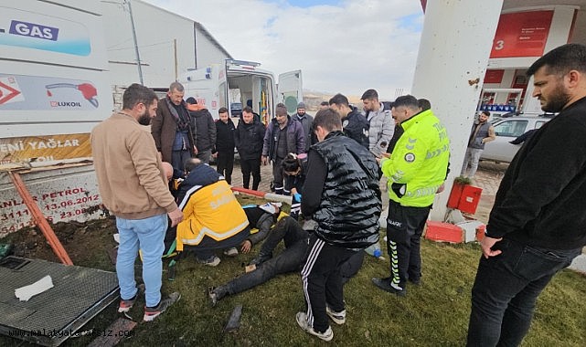 Malatya'da kontrolden çıkan hafif ticari araç akaryakıt istasyonuna daldı. Kazada 2 kişi yaralandı.