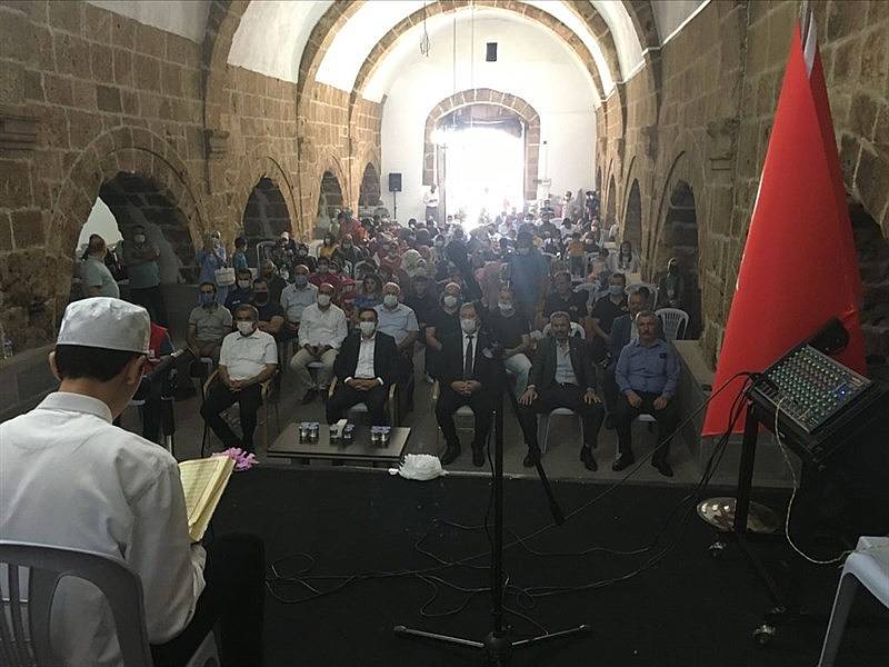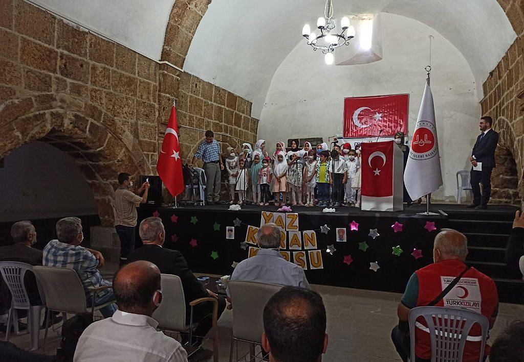 Millet Han'da İlçe Müftülüğü tarafından yaz dönemi Kur'an-ı Kerim kurslarının sona ermesi nedeniyle düzenlenen programa, Kaymakam Muhammed Öztaş, İlçe Müftülüğü yetkilileri, diğer yetkili ve ilgililer ile kursa katılan çocuk ve gençlerin aileleri katıldı.