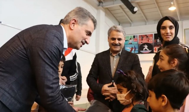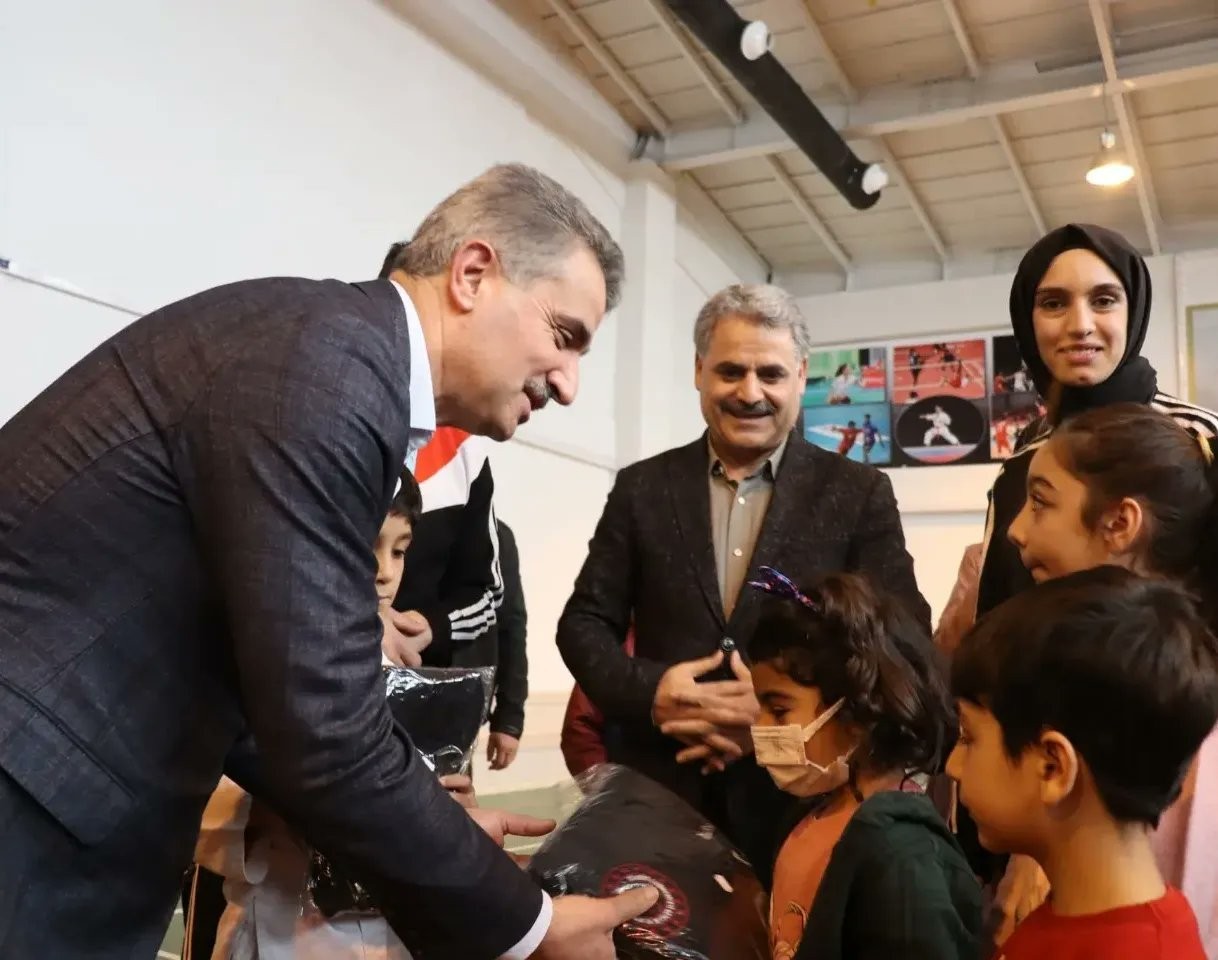 Melekbaba Gençlik Merkezi'ndeki eşofman dağıtım programına, Vali Aydın Baruş, Gençlik ve Spor İl Müdürü Ebu Bekir Kayhan, diğer ilgili ve yetkililer katıldı.