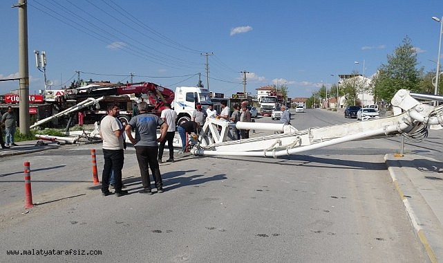 Malatya'da inşaat çalışması sırasında devrilen beton pompası yola düştü, seyir halindeki araçta maddi hasar meydana geldi.