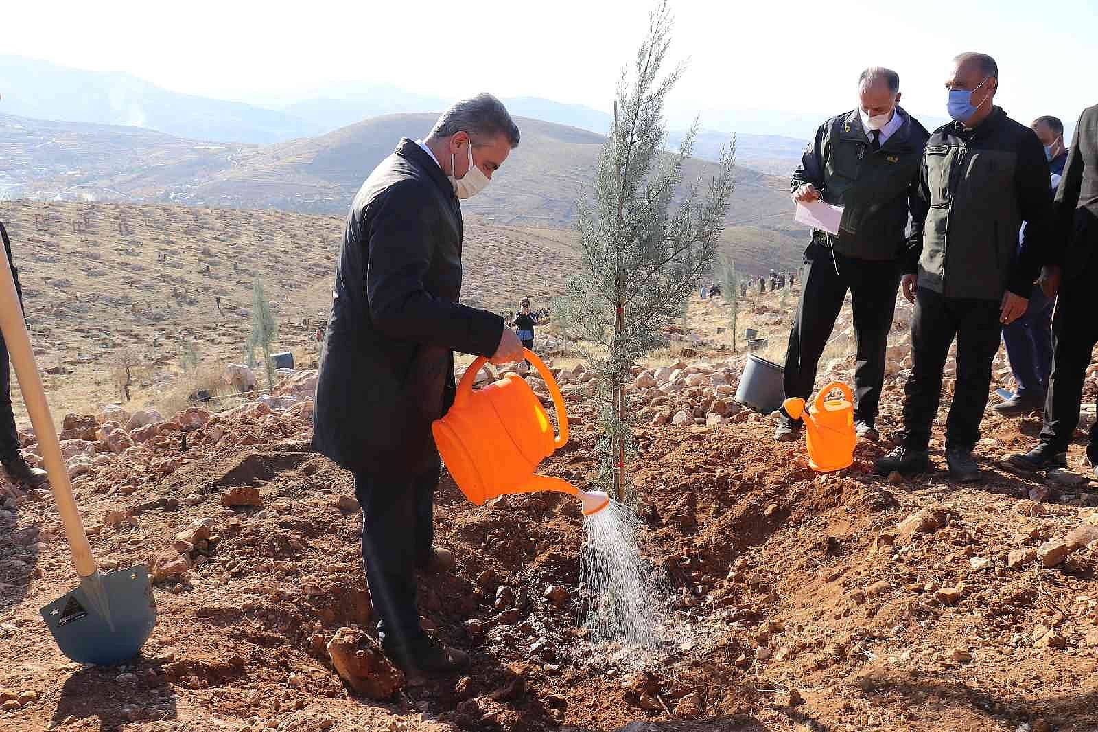 İklim değişikliklerinin getirdiği tehdidi aşmanın en önemli yolunun ormanları çoğaltmak olduğunu ifade ederek, " 2019 yılında Cumhurbaşkanımızın himayelerinde başlatılan Milli Ağaçlandırma Günü etkinliklerinin Malatya'mızda da 3'üncüsünü düzenliyoruz. 81 ilde 922 ilçede birlikte Türk milletinin seferberlik halinde katılarak kutlamış olduğu bu etkinliklerde Türkiye'nin geleceğine nefes olacak, dünyanın geleceğine nefes olacak ormanları yetiştirme çabasının güzel bir örneğini görüyoruz. Bugün Türkiye genelinde başlatılan etkinlerle bir yılda yaklaşık 250 milyon fidan toprakla buluşacak. Malatya'mızda da 2 milyon 250 bin fidan bu süre içerisinde toprağa kavuşacak ve Malatya'mızın yeşilliği bir kat daha artacak. 11 Kasım'da düzenlenen etkinliklerle 15 hektarlık kayalık alanda Beydağı'nda 4 bin fidanımız toprakla buluşacak. Dünya kuraklığa doğru hızla gidiyor. Ciddi bir iklim değişikliği süreciyle karşı karşıyayız. Bu iklim değişikliğinin getirdiği tehdit hepimizin hayatına yönelik bir tehdit. Bu tehdidi aşmanın en önemli yolu toprağımızı, suyumuzu, havamızı koruyacak olan ormanlarımızı çoğaltmamızdır" dedi.